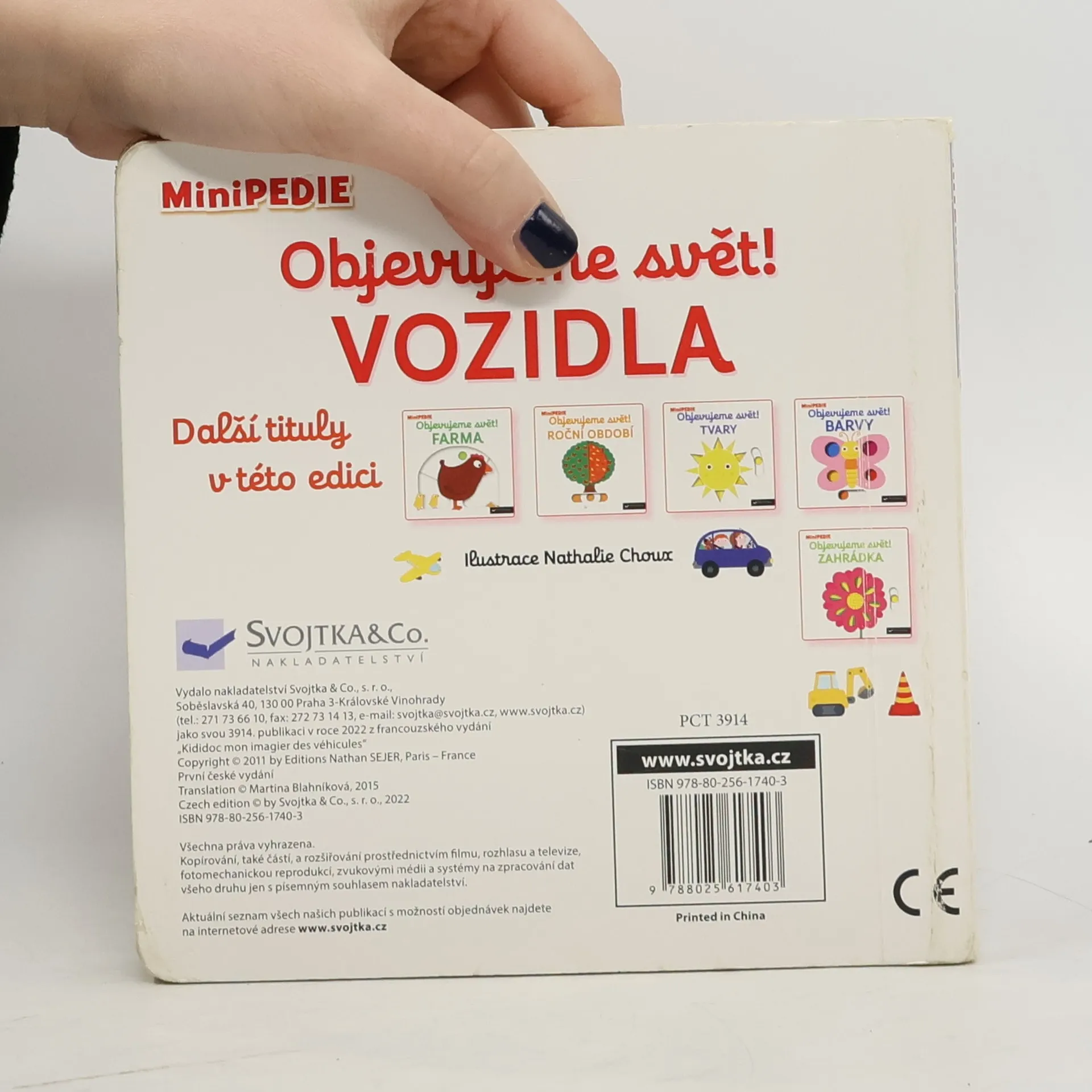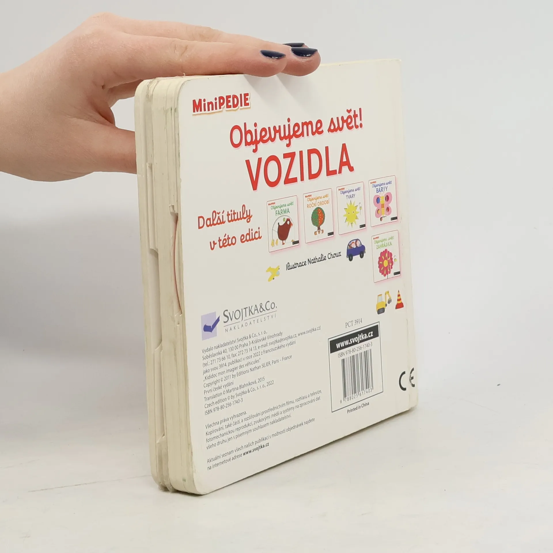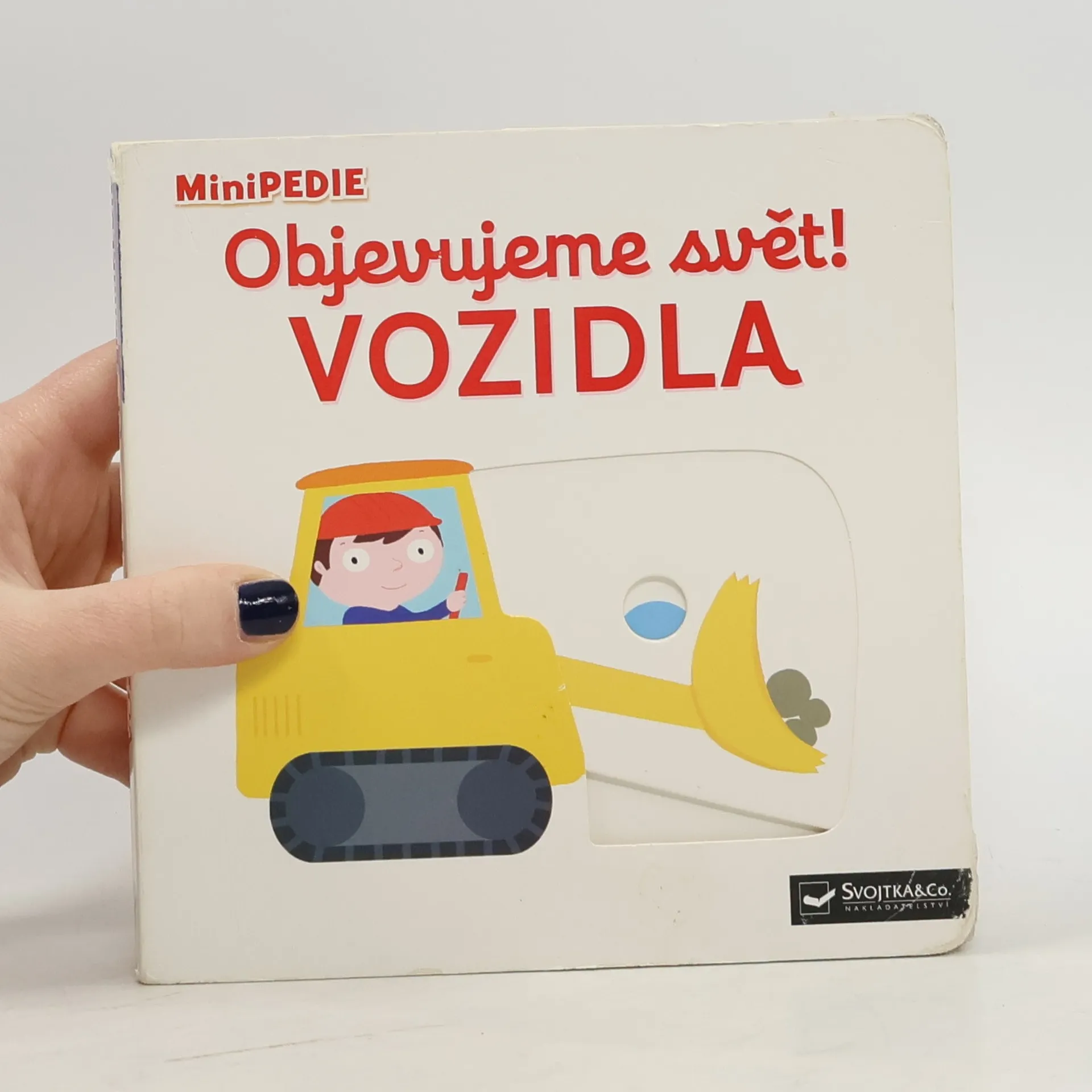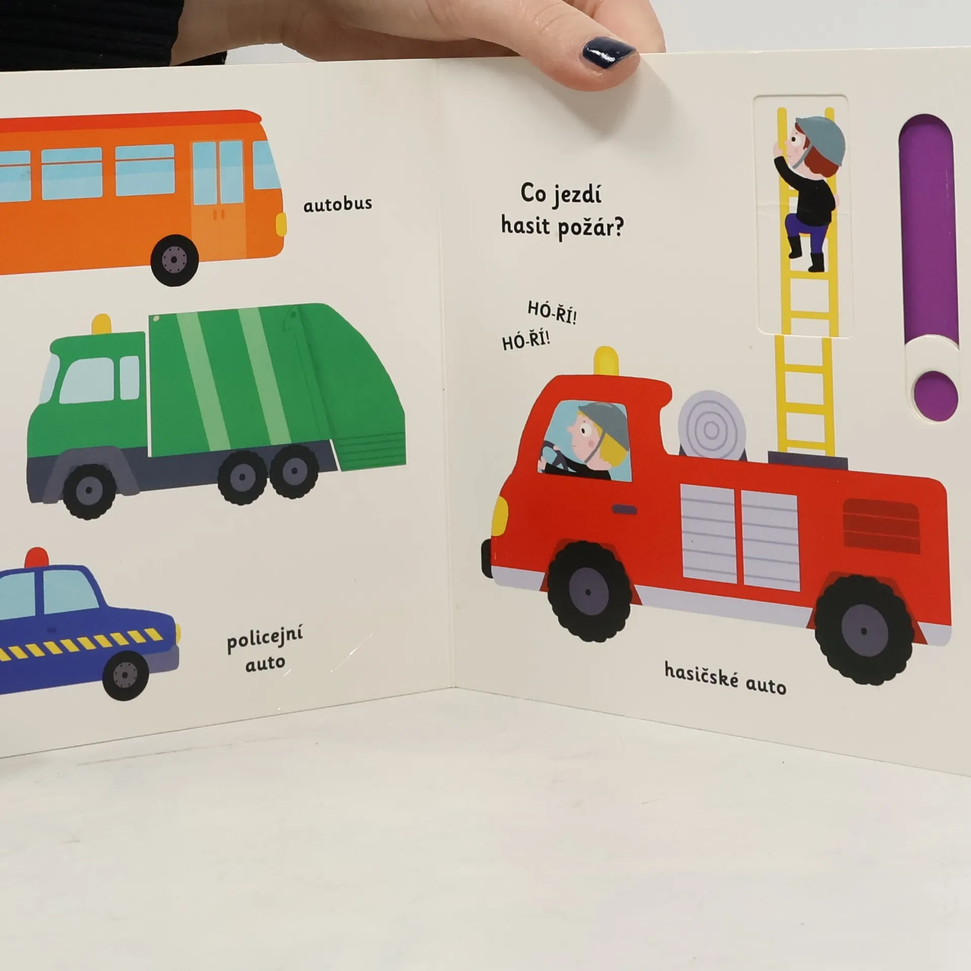 Objevovat svět vozidel a dopravních prostředků s tímto leporelem je tak zábavné! Tú, tú, copak to přijíždí a troubí? Co jezdí hasit požáry? Jaký stroj přenáší na staveništi těžké náklady? Co létá pomocí vrtule? Stačí jen vložit prstík do správného otvoru a lehce vysunout, zatáhnout nebo otočit ve směru šipky a hned bude váš malý objevitel znát odpovědi. Leporelo je určeno pro nejmenší děti od jednoho roku a má pevné stránky s posuvnými a otočnými prvky, a tak si naši nejmenší mohou při prohlížení a rozeznávání různých druhů vozidel a dopravních prostředků procvičit i jemnou motoriku.