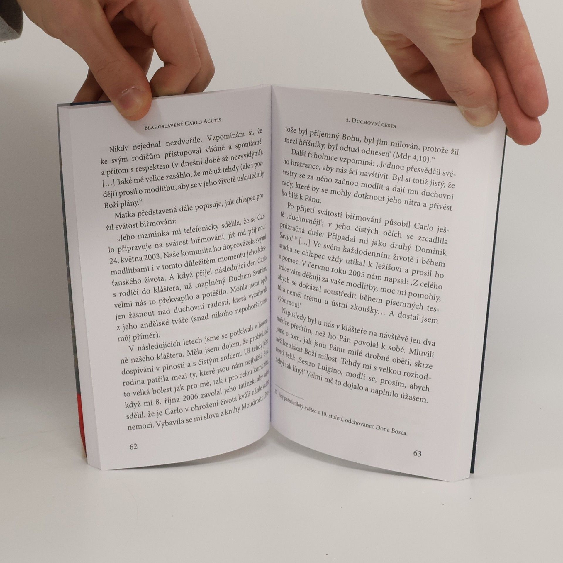 Italský teenager, který zemřel v roce 2006 ve věku patnácti let, působí doslova jako zjevení. Na první pohled normální kluk své doby, veselý a komunikativní, který rád jezdí na výlety, má své oblíbené pejsky, s nimiž natáčí zábavná videa, a velkou vášeň pro počítače. Ještě víc ale tíhne k Božím věcem. Prosadí si první svaté přijímání dřív, než bývá zvykem, a od té doby chodí denně na mši. „Eucharistie je moje autostráda do nebe,“ prohlásí Carlo později a je znát, že její význam chápe do velké hloubky. Evangelia zná skoro nazpaměť. Ze svých úspor se stará o řadu bezdomovců. Přirozeně se stává i misionářem ve svém okolí, pro Boha získává řadu svých vrstevníků i dospělých, včetně několika přátel hinduistů. Když se ptali jeho maminky, jak vůbec objevil víru, jestliže rodina byla prakticky nevěřící, paní Antonie bez obalu přiznala: „Určitě ne zásluhou nás rodičů, to klidně zveřejněte… Mě osobně Carlo zachránil. Byla jsem ve víře negramotná.“ Takových je nás možná víc… Kéž nás tento „Boží influencer“ při četbě provází svou přímluvou, abychom svůj život dokázali prožít tak krásně a naplno jako on.