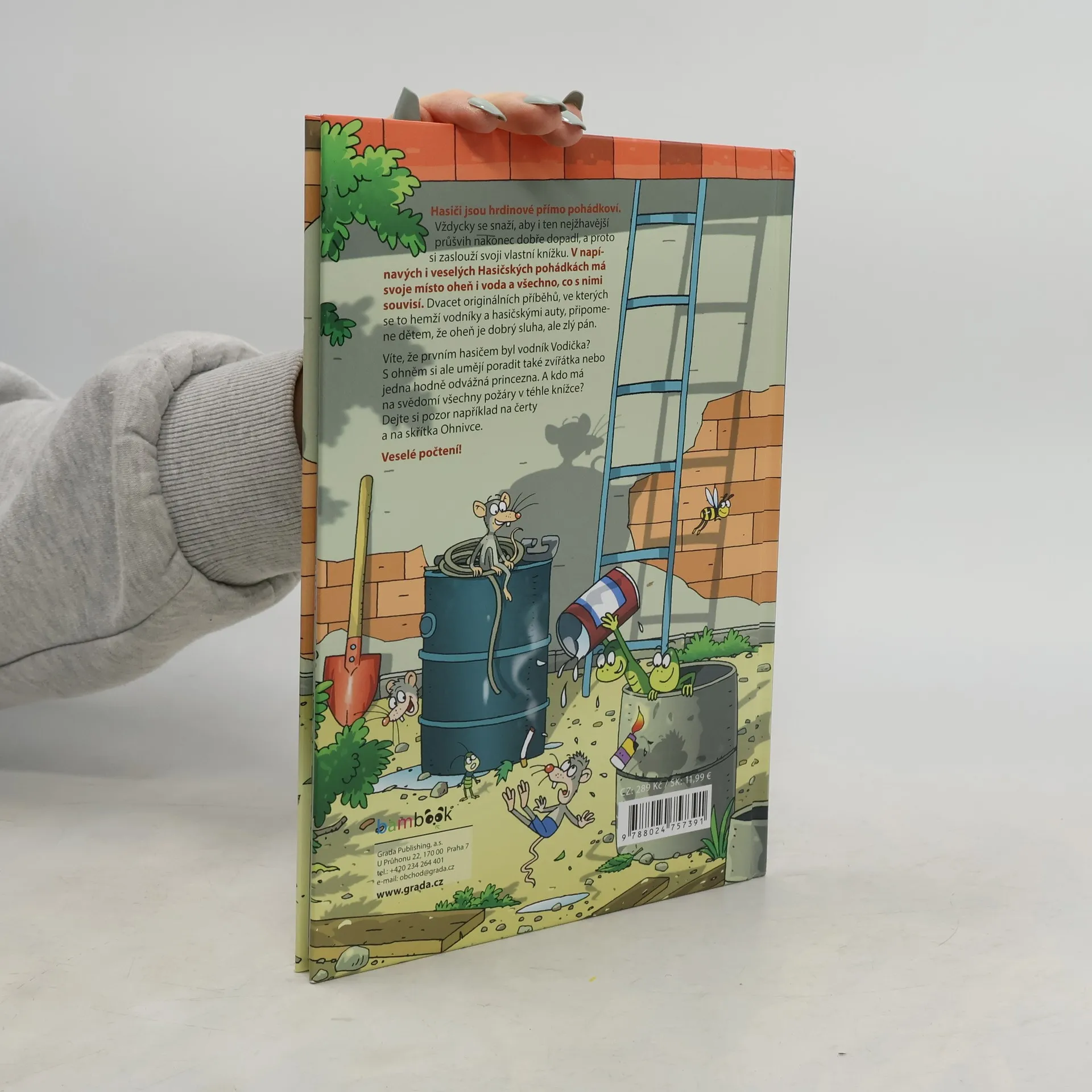 Hasiči se vždycky snaží, aby i ten nejžhavější průšvih měl dobrý konec, a tak si svoje pohádky rozhodně zaslouží. Víte, že prvním hasičem byl vodník Vodička? Budete se možná divit, kdo další ještě přiloží ruku k dílu, když jde o hašení požárů. V těchto pohádkách mají kromě hasičů svoje místo taky vodníci, zvířátka a hasičská auta. Ti všichni dětem připomenou, že oheň je dobrý sluha, ale zlý pán. A kdo má všechny neplechy s ohněm na svědomí? Dejte si pozor na čerty a na skřítka Ohnivce. Veselé počtení!
