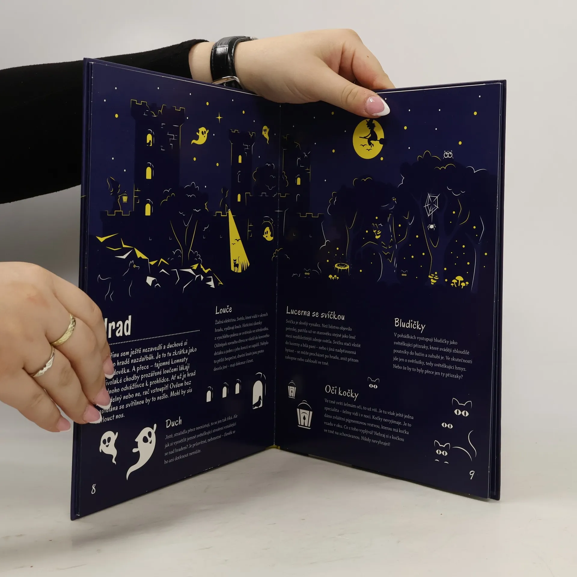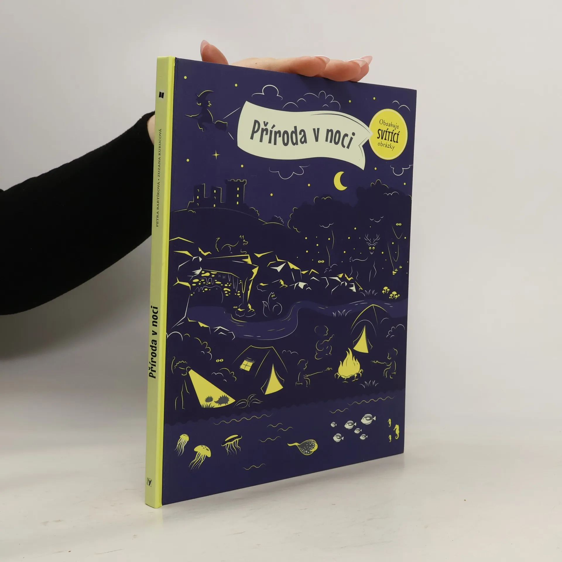 Představ si tmu a v ní jen dvě oči. Kdo se to dívá? Kočka, nebo strašidlo? Světlo, které vydávají různí tvorové v přírodě, fascinuje lidstvo odpradávna. Vůbec nejradši bychom si na ně posvítili – abychom měli ve všem jasno. V této knize zjistíš, co svítí v lese, na nebi i pod vodou nebo jak vypadá planeta Země v noci. Až dočteš, polož otevřenou knihu přímo pod lampičku. Počkej pár minut a pak zhasni. Cvak! Nasvícená ilustrace se rozzáří ve tmě do všech stran!