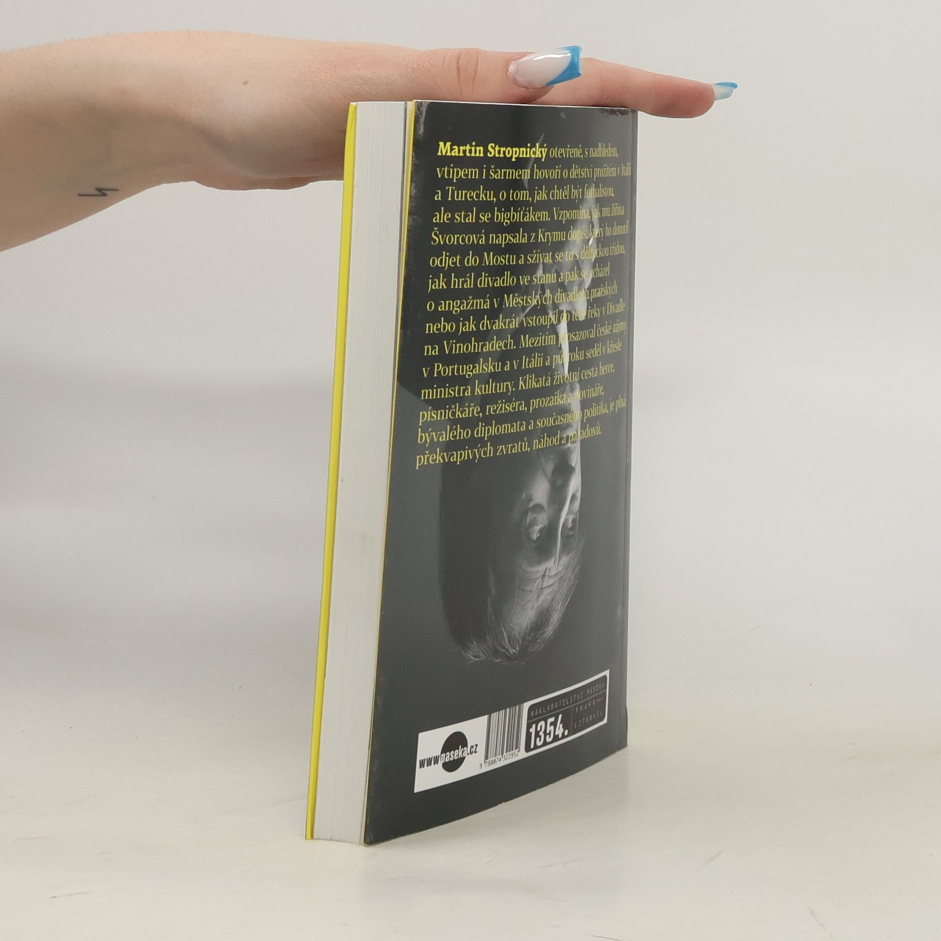 Rozhovor s Martinem Stropnickým Martin Stropnický otevřeně, s nadhledem, vtipem i šarmem hovoří o dětství prožitém v Itálii a Turecku, o tom, jak chtěl být fotbalistou, ale stal se bigbíťákem. Vzpomíná, jak mu Jiřina Švorcová napsala z Krymu dopis, který ho donutil odjet do Mostu a sžívat se tu s dělnickou třídou, jak hrál divadlo ve stanu a pak se ucházel o angažmá v Městských divadlech pražských nebo jak dvakrát vstoupil do téže řeky v Divadle na Vinohradech. Mezitím prosazoval české zájmy v Portugalsku a v Itálii a půl roku seděl v křesle ministra kultury. Klikatá životní cesta herce, písničkáře, režiséra, prozaika a novináře, bývalého diplomata a politika, je plná překvapivých zvratů, náhod a paradoxů.
