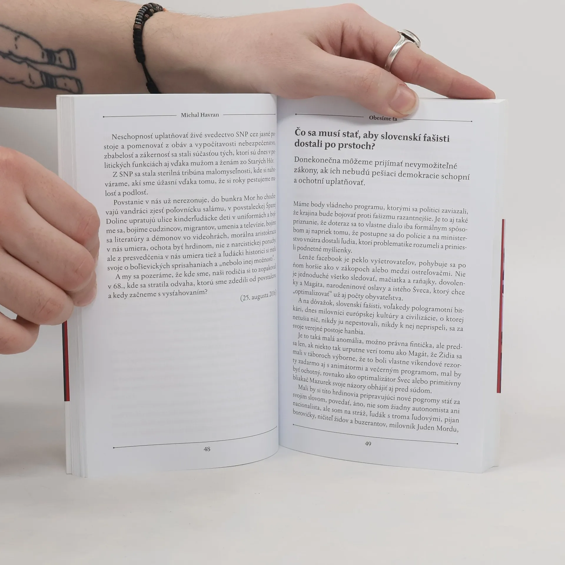 Pohľad rešpektovaného komentátora. Kedy bude cirkev hodná svojho pápeža? Prečo je emancipácia hlúposti nebezpečná? Rozumieme tomu že sa nehnedne len zo slnka? Nová kniha Michala Havrana nie je len akýsi pokus o naivný dialóg, ale diagnostika nových tvárí fašizmu a toho, čo sa so Slovenskom deje. Pod hlavičkou SME autor z týždňa na týždeň píše o rôznych aktuálnych, ale aj nadčasových témach. Vybrali sme Havranove autorské strany, ktoré svoj odkaz nestrácajú, ale časom získavajú nový rozmer. V tejto knihe vám ich prinášame.