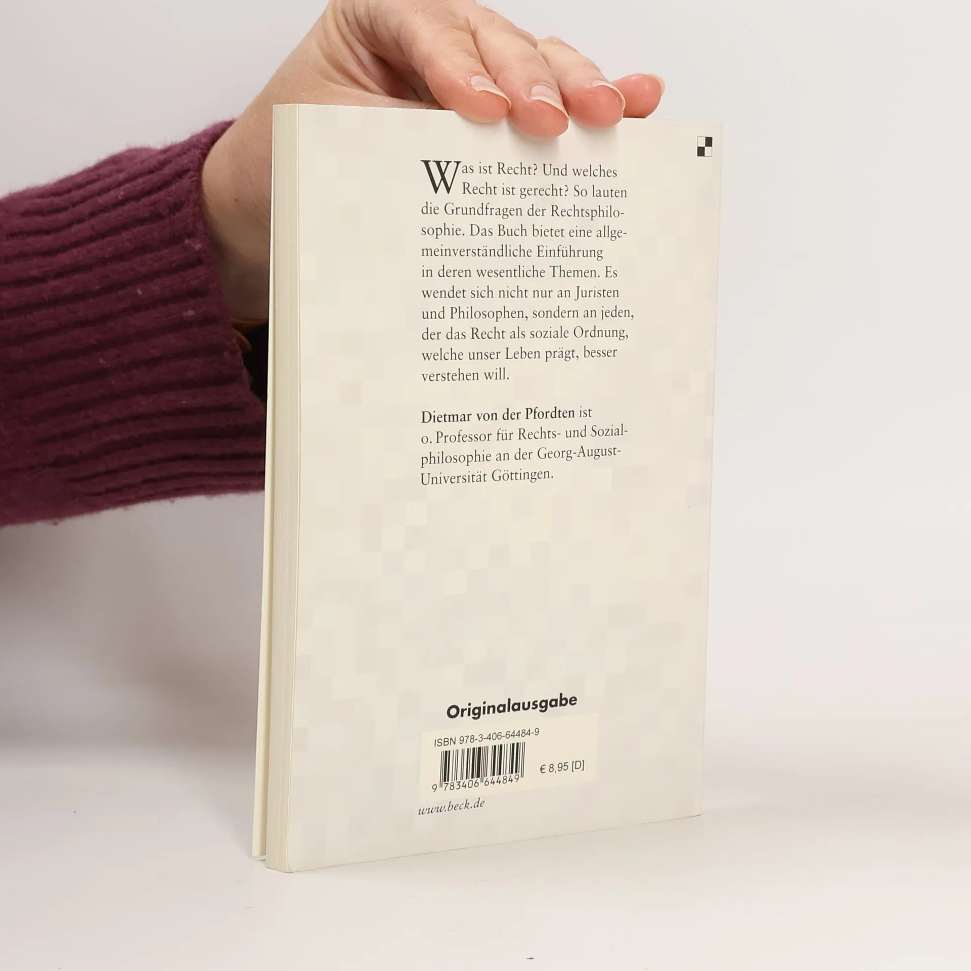 Was ist Recht? Und welches Recht ist gerecht? So lauten die Grundfragen der Rechtsphilosophie. Das Buch bietet eine allgemeinverständliche Einführung in deren wesentliche Themen. Es wendet sich nicht nur an Juristen und Philosophen, sondern an jeden, der das Recht als soziale Ordnung, welche unser Leben prägt, besser verstehen will.