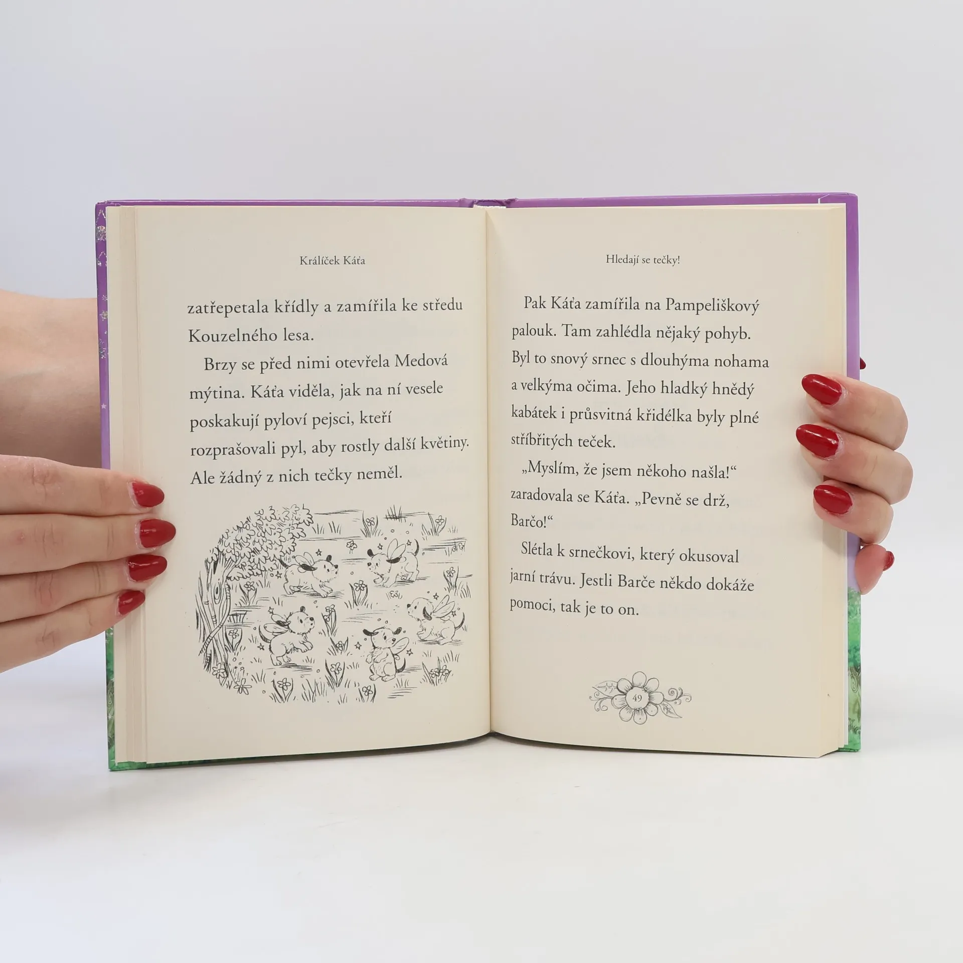 Vítejte v čarovném lese, o který se starají roztomilá zvířátka a vzduchem voní kouzla. Králíček Káťa poletuje po Kouzelném lese a otevírá kvítky, aby byly co nejkrásnější. Uvnitř jednoho modrého zvonku na ni čeká překvapení – beruška Bára! Ukrývá se před okolním světem a je smutná. Má totiž na krovkách jiný počet teček než její kamarádky. Přesvědčí Káťa berušku, že není důležité to, jak vypadá, ale jaká je uvnitř a co dokáže? Laskavý příběh pro nejmenší čtenáře o tom, že pomáhat je krásné. Bonus navíc – na konci knížky najdete pár zábavných úkolů a aktivit inspirovaných příběhem.