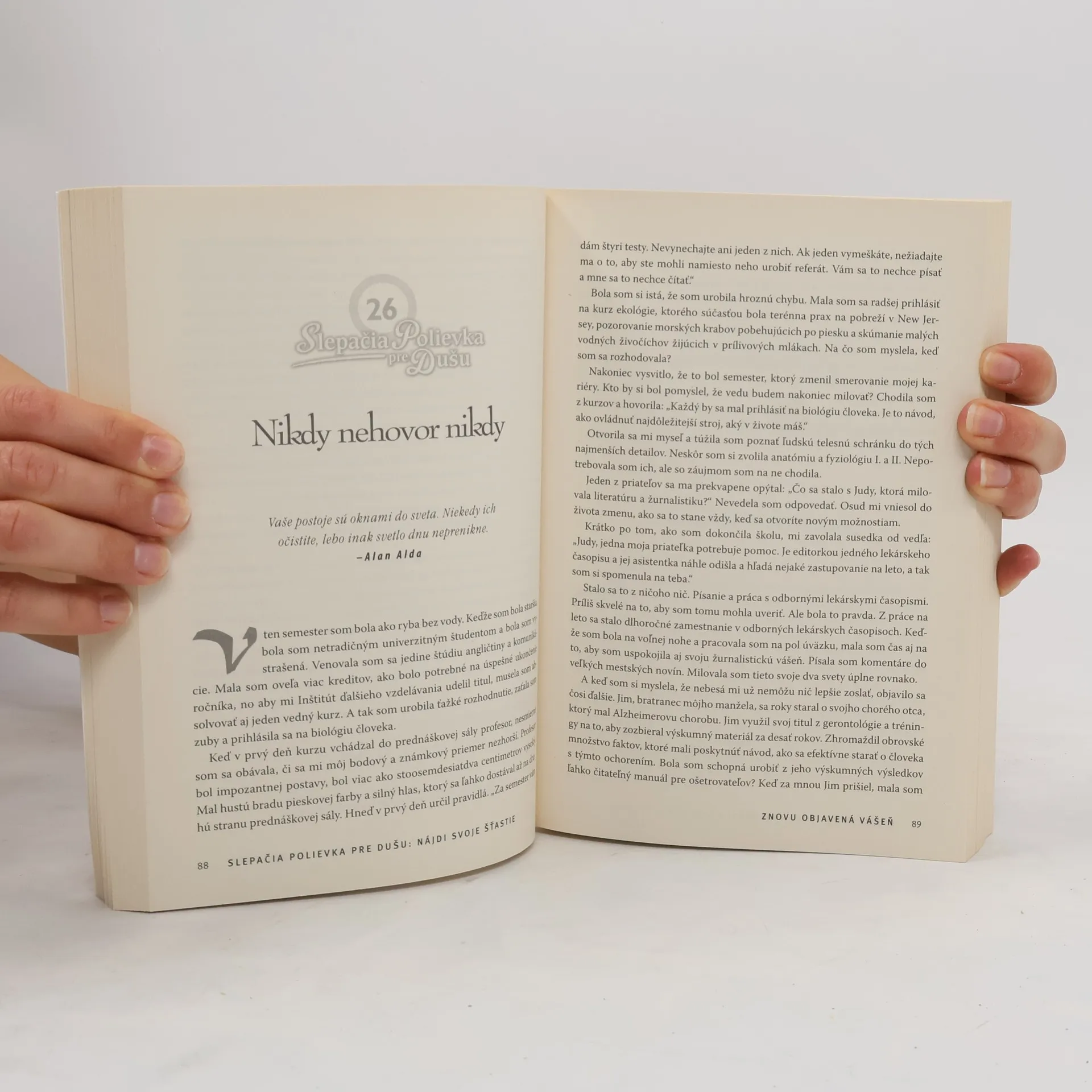 Kto by nechcel byť šťastný? Plný radosti, spokojnosti, žiariť, žiť naplnený život a rozdávať úsmevy... no povedzte, dokážete si predstaviť niečo lákavejšie? Navyše veď aj vedci zistili, že pocit šťastia predlžuje život až o deväť rokov! Lenže medzi tými, ktorí siahli po tejto knihe, môžu byť aj takí, ktorým pocit šťastia chýba. Cítia sa dezorientovaní, stratili motiváciu, nebaví ich tešiť sa zo života. Možno si myslia, že za to môžu okolnosti, do ktorých sa dostali, ale v skutočnosti je jedno, kto za to môže, dôležité je zistiť, že život stojí za to žiť! Táto kniha obsahuje mnoho príbehov, ktoré vám ukážu, že jestvuje veľa spôsobov, ako dosiahnuť šťastie; keď si ich prečítate, budete
