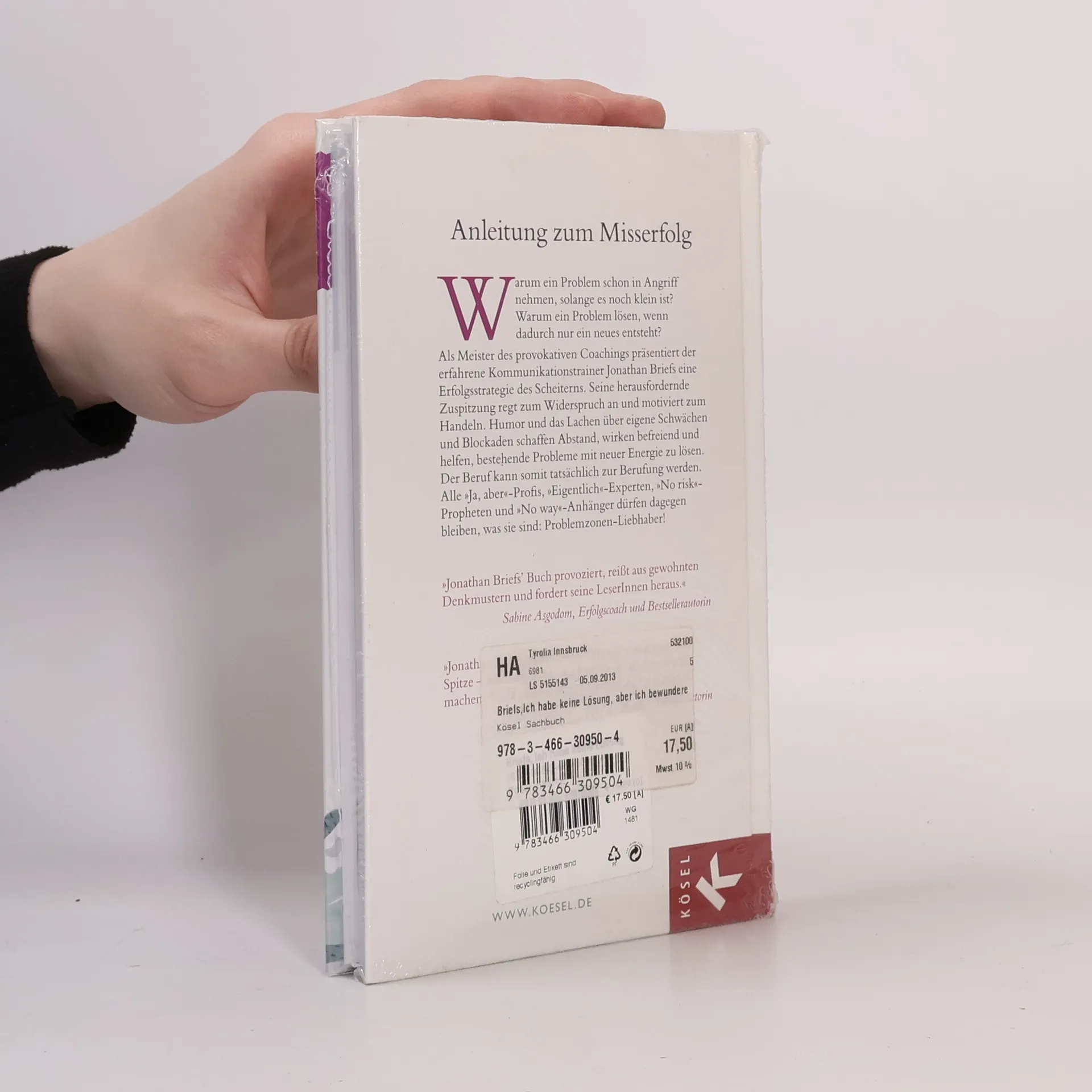 Warum ein Problem schon in Angriff nehmen, solange es noch klein ist? Warum ein Problem lösen, wenn dadurch nur ein neues entsteht? Als Meister des provokativen Coachings präsentiert Jonathan Briefs eine Erfolgsstrategie des Scheiterns à la Watzlawick. Aus seiner langjährigen Zusammenarbeit mit Spitzensportlern stellt er seine Coaching-Erfahrungen einfach auf den Kopf und plädiert für eine Vertiefung der beruflichen Probleme. Briefs taucht dabei genüsslich ein in den Gedankenmüll der Selbstsabotage und rät: »Begrabe die Illusion eines gelungenen Berufslebens an der Biegung des Flusses.«Die provokative Zuspitzung regt zum Widerspruch an und motiviert zum Handeln. Humor und das Lachen über eigene Schwächen und Blockaden schaffen Abstand, wirken befreiend und helfen, bestehende Probleme selbstverantwortlich zu lösen. Der Beruf kann somit tatsächlich zur Berufung werden. Alle »Ja, aber-Profis«, »Eigentlich-Experten«, »No risk-Propheten« und »No way-Anhänger« dürfen dagegen bleiben, was sie sind: Problemzonen-Liebhaber!