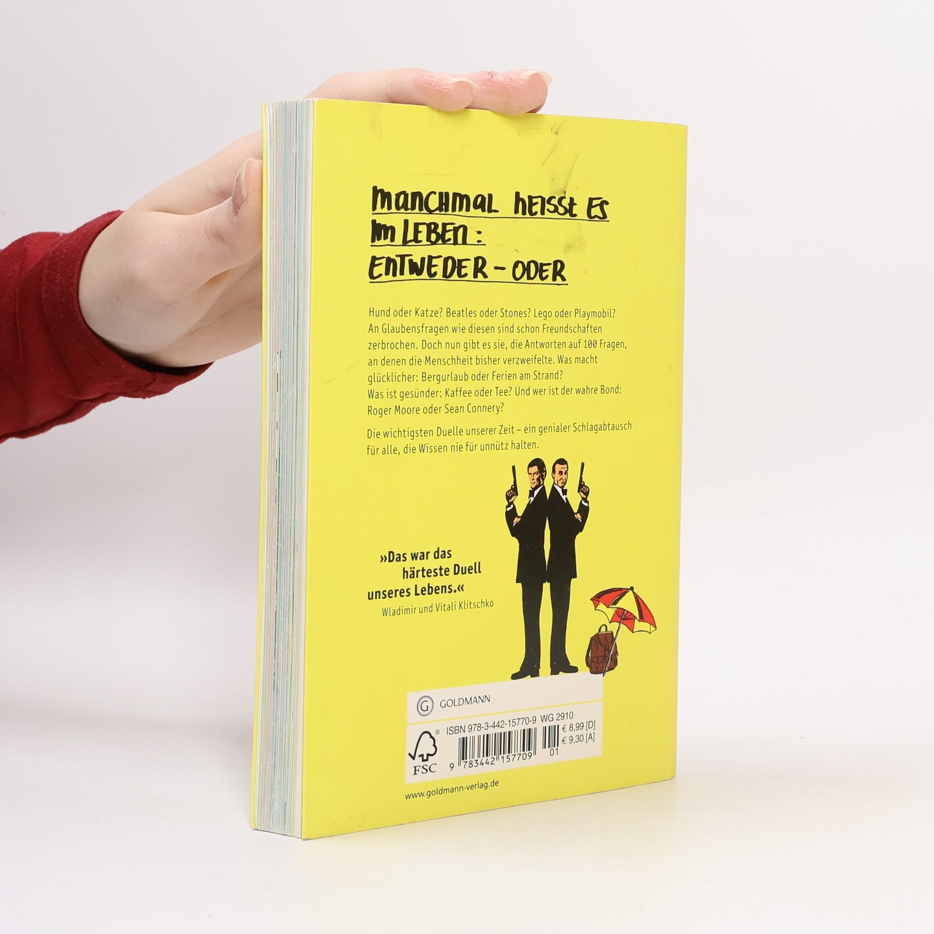 Was wir schon immer über George Clooney wissen wollten – und warum Brad Pitt trotzdem heißer ist! Manchmal heißt es im Leben: entweder – oder. Da zählt kein halbherziges „Ach, kommt darauf an“, kein lauwarmes „Du, irgendwie sind beide ganz okay“. Zu gewissen Fragen braucht es eine klare Haltung: Hund oder Katze? Batman oder Superman? Tee oder Kaffee? Ernie oder Bert? Und wer ist ein für alle Mal der heißeste Schauspieler auf Erden: George Clooney oder Brad Pitt? Mit überzeugenden Argumenten, faszinierendem, manchmal auch bizarrem Hintergrundwissen und einer gehörigen Portion schrägen Humors beantworten die Autoren 100 Fragen, an denen die Menschheit bisher verzweifelte.