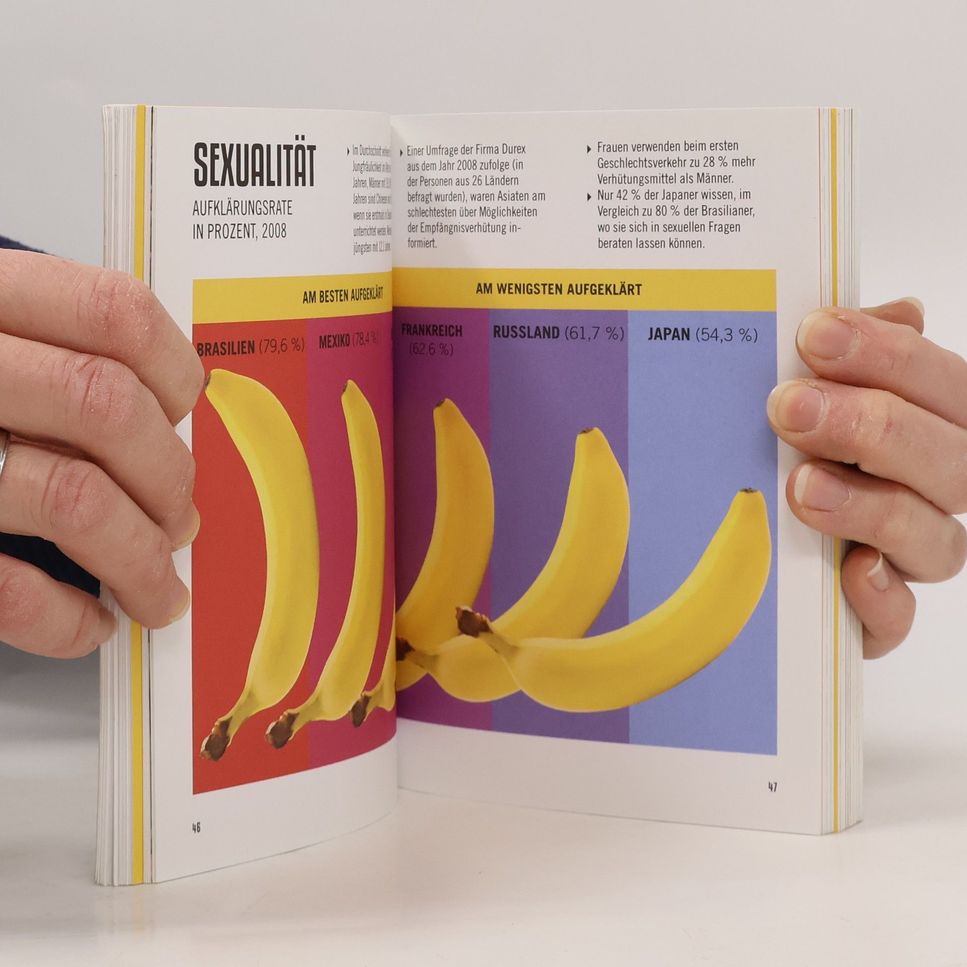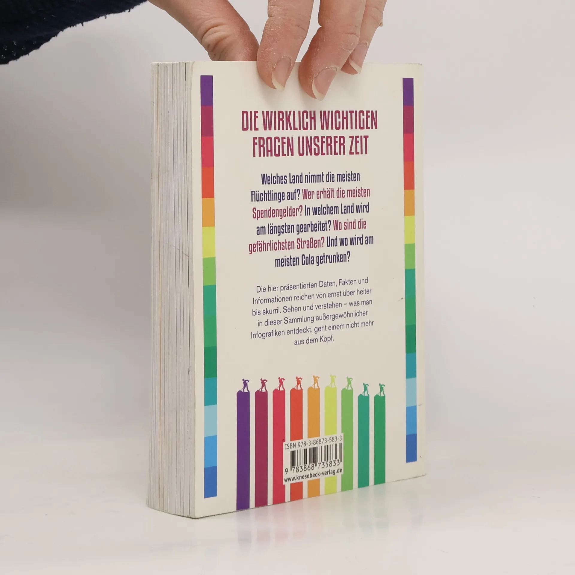 Welches Land nimmt die meisten Flüchtlinge auf? Wer erhält die meisten Spendengelder? In welchem Land wird am längsten gearbeitet? Wo sind die gefährlichsten Straßen? Und wo wird am meisten Cola getrunken? Die hier versammelten Daten und Informationen reichen von ernst bis skurril – über alles, was dazwischen liegt. Die Themenpalette erstreckt sich hierbei von Umwelt über Religion bis hin zu Politik, Wirtschaft und Kriminalität. Die oft erstaunlichen Ergebnisse eröffnen völlig neue Perspektiven auf das globale Geschehen. Sehen und verstehen – was man in dieser visuellen Enzyklopädie entdeckt, geht einem nicht mehr aus dem Kopf. So entsteht ein Kaleidoskop aus nützlichem und unnützem Wissen, das zum einen Spaß macht und zum anderen einen Blick auf das große Ganze erlaubt.
