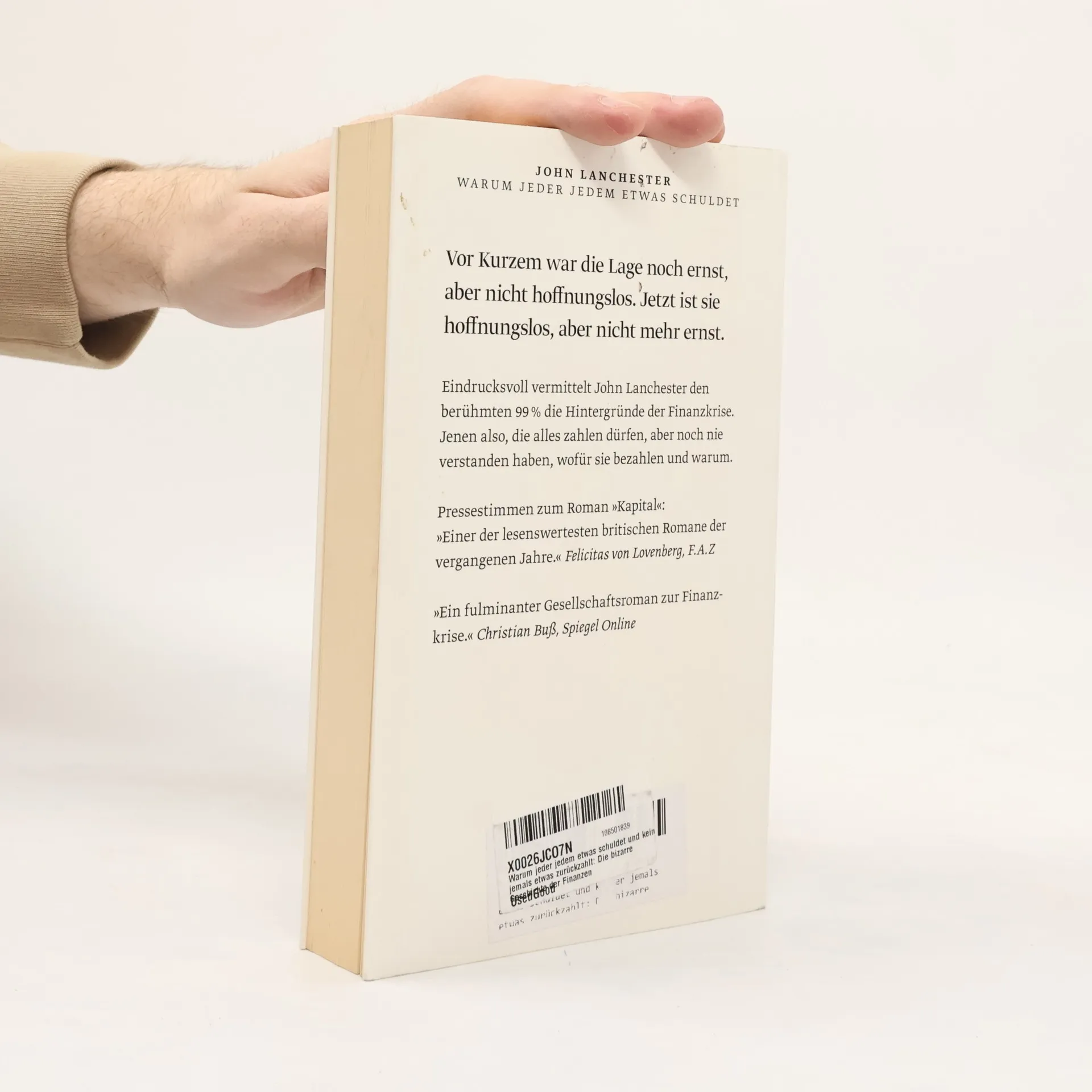 Unterhaltsam und verständlich entwirrt der Autor des Welterfolgs »Kapital« jedem Laien, warum die Finanzwelt und die globale Welt seit Jahren erschüttert werden und die Ursachen noch immer nicht behoben sind. Der Sündenfall begann, als Finanzjongleure die Tatsache verschleierten, dass jedes finanzielle Abenteuer irgendwann von irgendjemandem bezahlt werden muss. Dabei macht er aus seiner sehr britischen Euroskepsis keinen Hehl und umreißt Vorschläge, wie eine politische Einigung Europas gelingen und Europa stärken könnte, um die Finanzkrise gemeinsam zu überwinden. »Gestern«, so heißt ein sarkastischer Witz, »standen wir vor dem Abgrund. Heute sind wir einen Schritt weiter.« Dazu will es John Lanchester nicht kommen lassen – er plädiert dafür, einen Schritt zurückzutreten und entschlossen zu handeln, um nicht alles, was seit dem Fall der Mauer erreicht wurde, verloren gehen zu lassen.