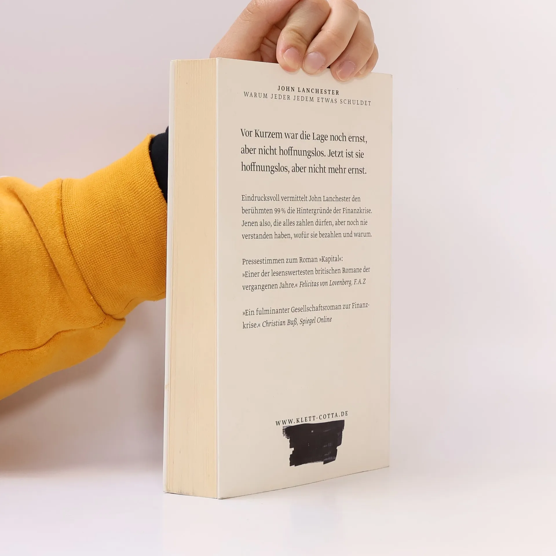Unterhaltsam und verständlich entwirrt der Autor des Welterfolgs »Kapital« jedem Laien, warum die Finanzwelt und die globale Welt seit Jahren erschüttert werden und die Ursachen noch immer nicht behoben sind. Der Sündenfall begann, als Finanzjongleure die Tatsache verschleierten, dass jedes finanzielle Abenteuer irgendwann von irgendjemandem bezahlt werden muss. Dabei macht er aus seiner sehr britischen Euroskepsis keinen Hehl und umreißt Vorschläge, wie eine politische Einigung Europas gelingen und Europa stärken könnte, um die Finanzkrise gemeinsam zu überwinden. »Gestern«, so heißt ein sarkastischer Witz, »standen wir vor dem Abgrund. Heute sind wir einen Schritt weiter.« Dazu will es John Lanchester nicht kommen lassen – er plädiert dafür, einen Schritt zurückzutreten und entschlossen zu handeln, um nicht alles, was seit dem Fall der Mauer erreicht wurde, verloren gehen zu lassen.