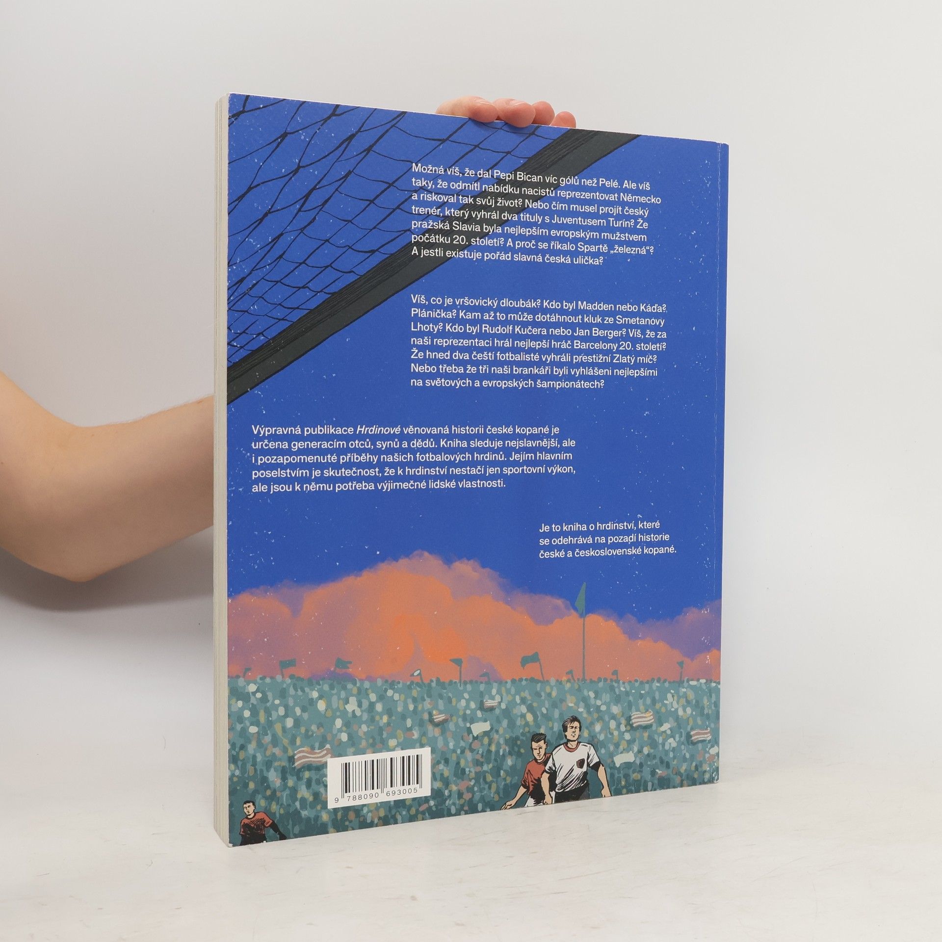 Výpravná publikace Hrdinové chce svým námětem spojit generace otců, synů a dědů. Představuje fotbal jako součást našeho života, jako něco, na co můžeme být pyšní, a jako něco, z čeho se dokážeme poučit. Hlavním poselstvím knihy je skutečnost, že k hrdinství nestačí jen sportovní výkon, ale jsou k němu potřeba výjimečné lidské vlastnosti. Odvaha, čestnost a gentlemanství. Co dělá člověka hrdinou? Obdivuhodný čin, postoj, nasazení… A právě o těchto vlastnostech kniha je. Rozebírá osobnostní rysy a činy pozapomenutých nebo stále živoucích hrdinů, kteří nezapommenutelně hráli hru jménem fotbal. V různých dobách, v různých klubech. A ať už to byli Češi, Slováci, Rakušané, Němci nebo Židé, vždycky byli a měli by zůstat naši. Naši hrdinové. Naše legendy. Jde o nový pohled na český fotbal, jako společenský fenomén, který ovlivňuje naše životy, stejně jako ovlivňoval životy našich dědů. A stejně bude jednou ovlivňovat budoucí životy.