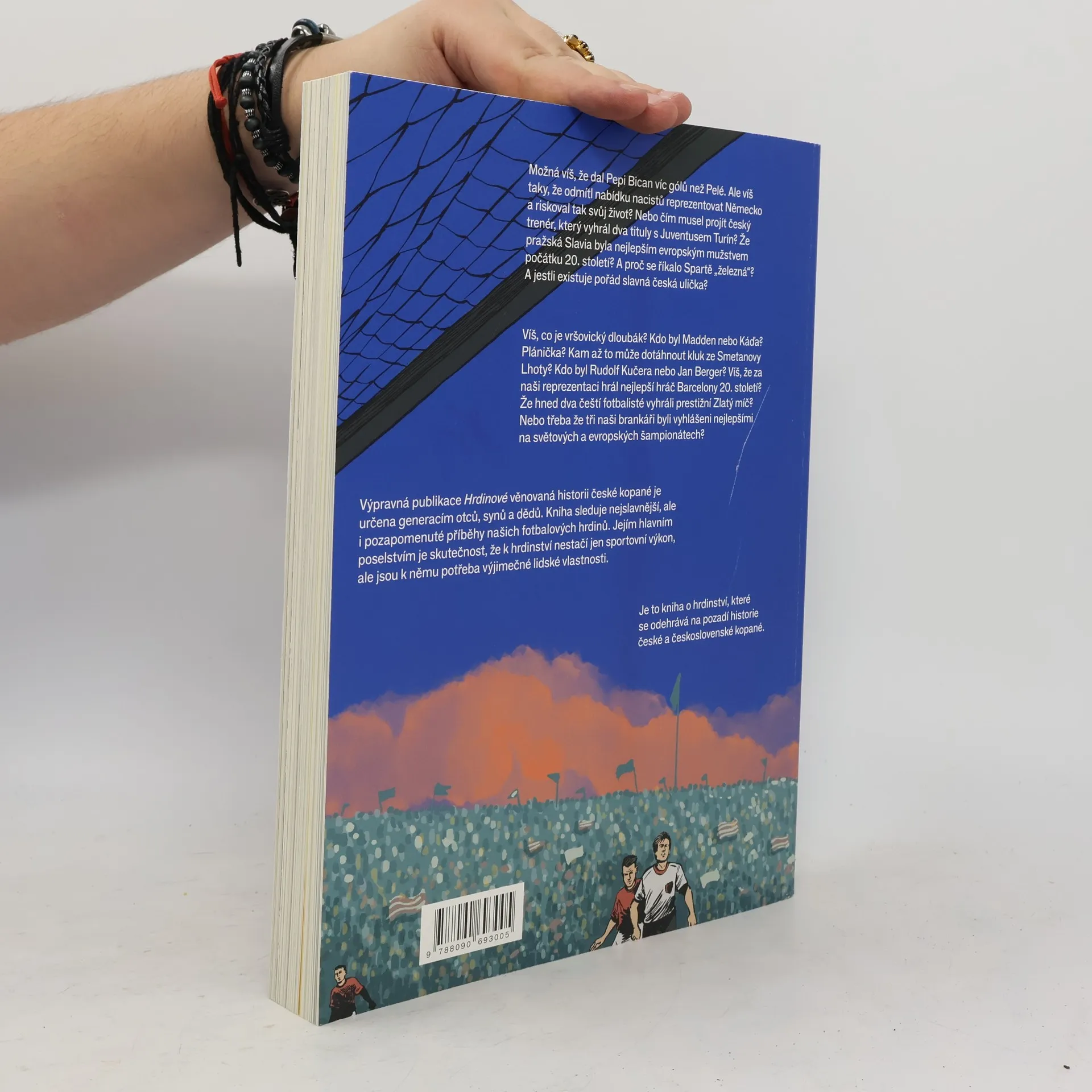 Výpravná publikace Hrdinové chce svým námětem spojit generace otců, synů a dědů. Představuje fotbal jako součást našeho života, jako něco, na co můžeme být pyšní, a jako něco, z čeho se dokážeme poučit. Hlavním poselstvím knihy je skutečnost, že k hrdinství nestačí jen sportovní výkon, ale jsou k němu potřeba výjimečné lidské vlastnosti. Odvaha, čestnost a gentlemanství. Co dělá člověka hrdinou? Obdivuhodný čin, postoj, nasazení… A právě o těchto vlastnostech kniha je. Rozebírá osobnostní rysy a činy pozapomenutých nebo stále živoucích hrdinů, kteří nezapommenutelně hráli hru jménem fotbal. V různých dobách, v různých klubech. A ať už to byli Češi, Slováci, Rakušané, Němci nebo Židé, vždycky byli a měli by zůstat naši. Naši hrdinové. Naše legendy. Jde o nový pohled na český fotbal, jako společenský fenomén, který ovlivňuje naše životy, stejně jako ovlivňoval životy našich dědů. A stejně bude jednou ovlivňovat budoucí životy.