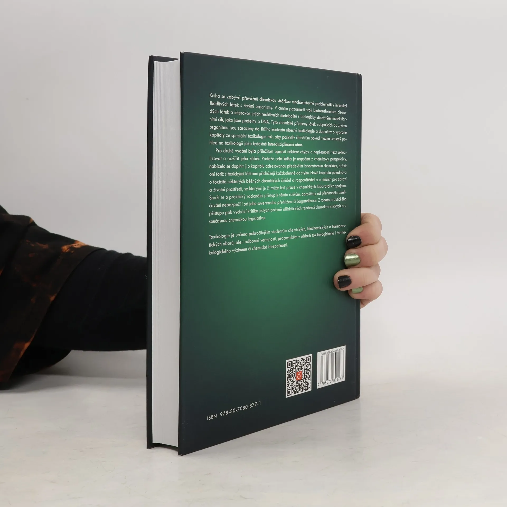 Kniha se zabývá převážně chemickou stránkou mnohavrstevné problematiky interakcí škodlivých látek s živými organismy. V centru pozornosti stojí biotransformace cizorodých látek a interakce jejich reaktivních metabolitů s biologicky důležitými molekulárními cíli, jako jsou proteiny a DNA. Tyto chemické přeměny látek vstupujících do živého organismu jsou zasazeny do širšího kontextu obecné toxikologie a doplněny o vybrané kapitoly ze speciální toxikologie tak, aby poskytly čtenářům pokud možno ucelený pohled na toxikologii jako bytostně interdisciplinární obor. Kapitola nově zařazená do druhého vydání pojednává o toxicitě některých běžných chemických činidel a rozpouštědel a o rizicích pro zdraví a životní prostředí, se kterými je či může být práce v chemických laboratořích spojena. Kniha je určena pokročilejším studentům chemických, biochemických a farmaceutických oborů, ale i odborné veřejnosti, pracovníkům v oblasti toxikologického i farmakologického výzkumu či chemické bezpečnosti.
