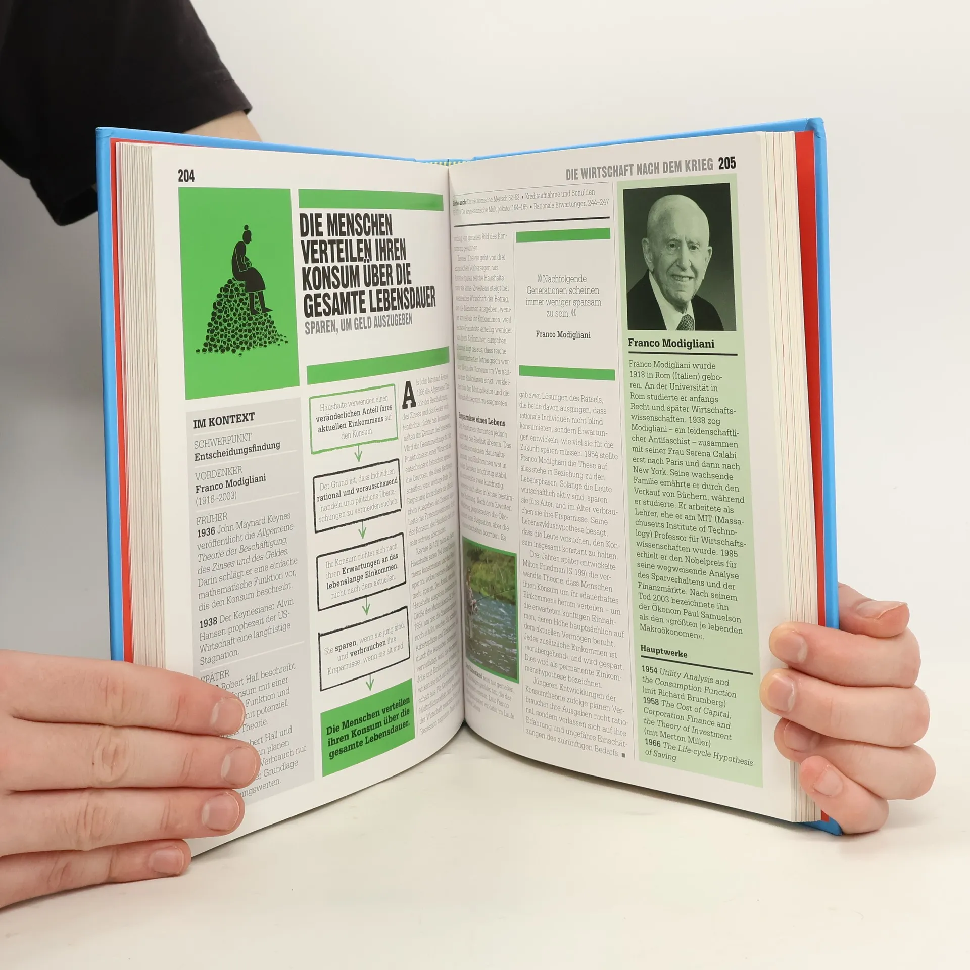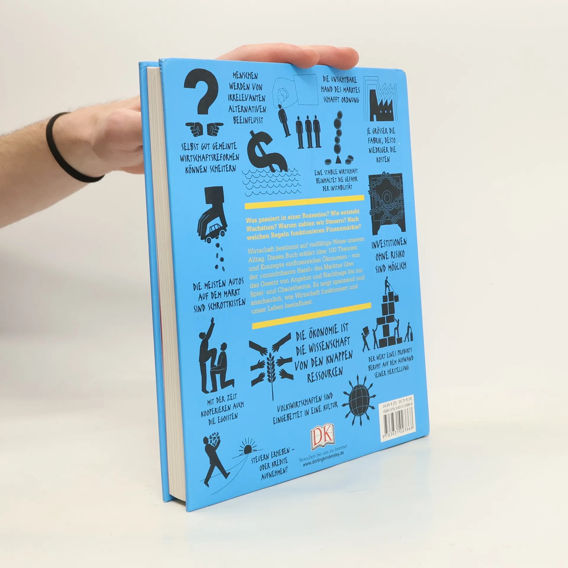 So funktioniert Wirtschaft Was ist ein gerechter Preis? Warum kosten Diamanten mehr als Wasser? Können wir arme Länder anschieben, indem wir ihnen die Schulden erlassen? Weshalb spiegelt der Immobilienmarkt Auf- und Abschwünge wider? In Zeiten, in denen Wirtschaftsthemen die Nachrichten beherrschen, ist es wichtiger denn je, über die Hintergründe Bescheid zu wissen. „Das Wirtschaftsbuch“ erklärt auf spannende, moderne und leicht verständliche Weise über 100 zentrale Theorien der Wirtschaftswissenschaften, mit denen wir das Zusammenspiel der Märkte und Interessen sowie den vielfältigen Einfluss wirtschaftlicher Entwicklungen auf unser Leben verstehen können. Anhand übersichtlicher Diagramme werden die zentralen Gedankengänge veranschaulicht. Porträts wichtiger Ökonomen und hervorgehobene Kurz-Biografien liefern umfassende Informationen zum Leben der Wissenschaftler und ihren Thesen. Außerdem wird jede Theorie durch übersichtliche Querverweise in einen historischen Zusammenhang gestellt und einem speziellen Schwerpunkt zugeordnet. So entsteht eine spannende Einführung in die Ökonomie und ihre unterschiedlichen Fachbereiche. Von der Dependenztheorie bis zur Verhaltensökonomie - dieses innovative Buch animiert sogar „Wirtschaftsmuffel“ zum Reinlesen, Nachschlagen und Auffrischen. Perfekt auch für Schüler und Studenten!