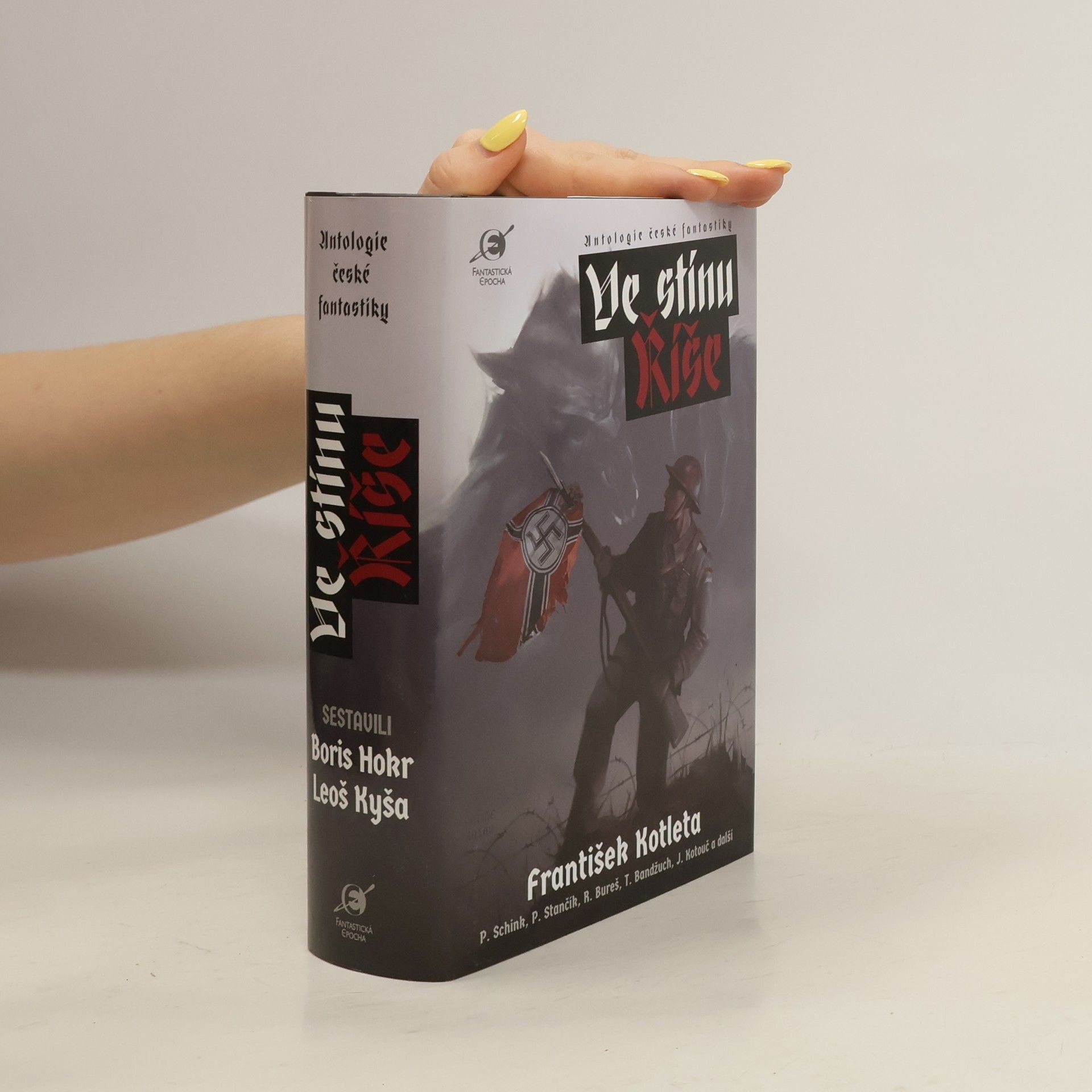 I více než sedmdesát let po skončení druhé světové války tvoří třetí říše a vše s ní spojené nedílnou součást naší historie, ale také popkultury. Dokonalí padouši, slizcí gestapáci, hororové obrazy koncentračních táborů, brutální řežby na bitevních polích od Atlantiku po Pacifik, od Evropy přes Afriku po Asii…, ale i bláznivé černé komedie nebo svérázné městské legendy. Jen máloco kdy podnítilo tolik rozmanitých příběhů. Málokdo dokáže představovat tak dokonalé bezcharakterní zlé postavy nebo naopak terče parodie a posměchu jako nacisté. Právě proto jsme dali nacisty na hraní těm nejlepším spisovatelům a spisovatelkám domácí fantastiky napříč generacemi. Připravte se na popkulturní blitzkrieg, jaký jste ještě nezažili! Obsah: První část - Boj začíná Oni (Markéta Klobasová) Opona padá, hra skončila (Julie Nováková) Jitro po zlé noci (Tomáš Bandžuch) Dým nad Mnichovem (David Šenk) Druhá část - Boj zuří Dos grojse genereraj (František Kotleta) Tenkrát na Ukrajině (Pavel Fritz) Ahaswehrmacht (Petr Stančík) Meyrink (Petr Schink) O lidském dobytku (Roman Bureš) Chlad věčnosti (Jakub Mařík) Dokud nás smrt nerozdělí (Míla Linc) Část třetí - Boj nekončí... Argentinské probuzení (Jan Kotouč) Digimengele (René Vaněk) Stroj na výrobu havranů (Petra Lukačovičová) Na vlastní kůži (Kristina Sněgoňová) Jediný člověk (Lucie Lukačovičová) Nacimars (Dan Černý)