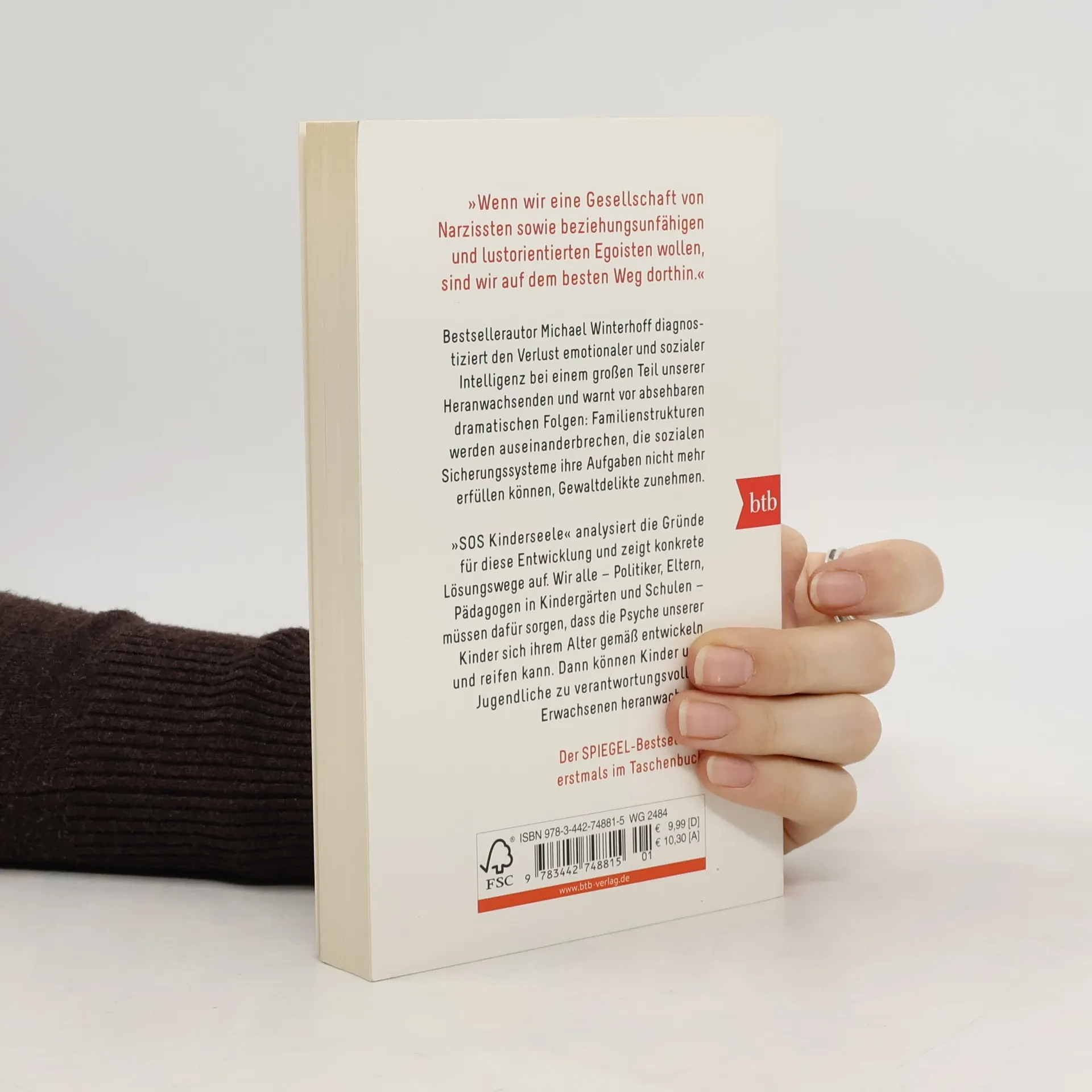 Wenn wir eine Gesellschaft von Narzissten sowie beziehungsunfähigen und lustorientierten Egoisten wollen, sind wir auf dem besten Weg dorthin. Die Grundlagen unseres sozialen Miteinanders sind bedroht, denn bei immer mehr Kindern ist ein fundamentaler Mangel an emotionaler und sozialer Intelligenz zu diagnostizieren. Gesellschaftliche Vereinbarungen, Mitgefühl und Verantwortung basieren aber auf einer emotional intakten Psyche. Der Kinderpsychiater, Therapeut und Bestsellerautor Michael Winterhoff legt nach. Kinder drohen nicht nur zu späteren Tyrannen zu werden, ihnen wird auch von Eltern wie professionellen Erziehern eine ausgewogene emotionale Entwicklung verwehrt. Dabei greifen falsche Strukturen und Bildungskonzepte in Familie, pädagogischem System und Politik gefährlich ineinander. Um dieser fatalen Entwicklung vorzubeugen, müssen alle, die Kinder auf ihrem Weg begleiten, eine Erziehungsaufgabe annehmen, die dem jeweiligen entwicklungspsychologischen Stand der Kinder gerecht wird. Winterhoff will der Erziehungs- und Bildungsdebatte eine neue Richtung weisen, um uns alle vor dramatischen Fehlentwicklungen zu schützen.