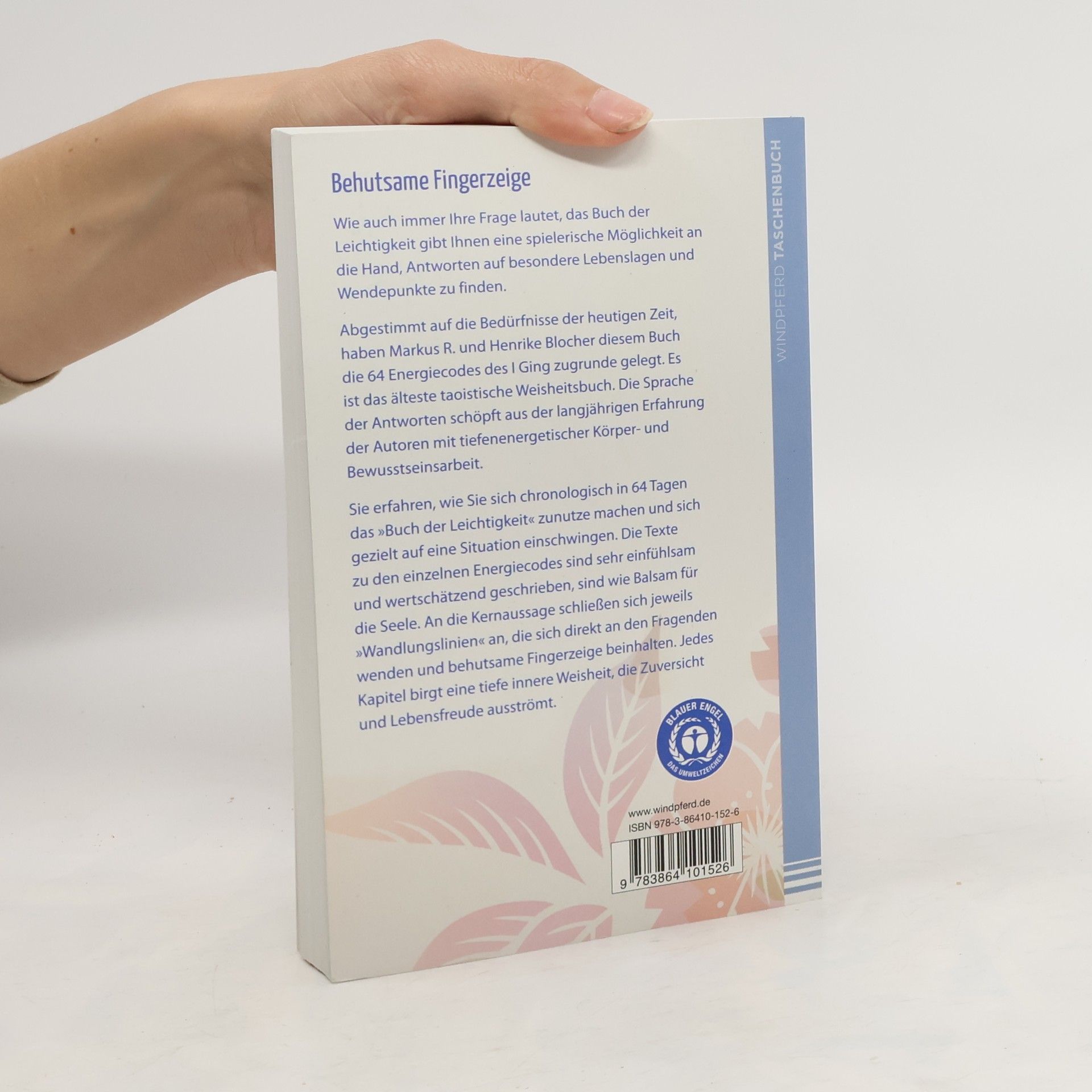 Behutsame Fingerzeige Wie auch immer Ihre Frage lautet, das Buch der Leichtigkeit gibt Ihnen eine spielerische Möglichkeit an die Hand, Antworten auf besondere Lebenslagen und Wendepunkte zu finden. Abgestimmt auf die Bedürfnisse der heutigen Zeit, haben Markus R. und Henrike Blocher diesem Buch die 64 Energiecodes des I Ging zugrunde gelegt. Es ist das älteste taoistische Weisheitsbuch. Die Sprache der Antworten schöpft aus der langjährigen Erfahrung der Autoren mit tiefenenergetischer Körper- und Bewusstseinsarbeit. Sie erfahren, wie Sie sich chronologisch in 64 Tagen das "Buch der Leichtigkeit" zunutze machen und sich gezielt auf eine Situation einschwingen. Die Texte zu den einzelnen Energiecodes sind sehr einfühlsam und wertschätzend geschrieben, sind wie Balsam für die Seele. An die Kernaussage schließen sich jeweils "Wandlungslinien" an, die sich direkt an den Fragenden wenden und behutsame Fingerzeige beinhalten. Jedes Kapitel birgt eine tiefe innere Weisheit, die Zuversicht und Lebensfreude ausströmt.