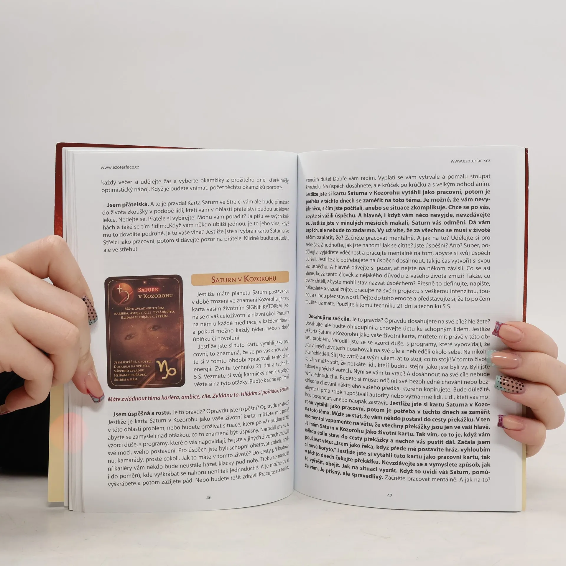 Planeta Saturn hraje klíčovou roli v našem karmickém zadání a v poselství našich předků. Každý z nás prožívá události podle vzorců duše a programů, které jsme zdědili. Naše životy jsou ovlivněny zkušenostmi našich předků, a je na nás, zda posuneme rodovou linii vpřed, nebo zklameme. Důležité je znát postavení Saturna nejen při narození, ale i během života, kdy si každý vyzkouší různé jeho polohy. Karty KARMICKÝ SATURN a kniha poskytují návod, jak pracovat s každodenní realitou a pochopit boží plán. Znalost příčin událostí usnadňuje jejich změnu. Tyto karty jsou terapeutické a vhodné pro osobní i profesionální práci. Umožňují zjistit celoživotní téma, na kterém má člověk pracovat, a každý měsíc, ideálně při úplňku, si vytáhnout téma na další týdny. Tato karta naznačuje, s jakým tématem se má pracovat a jaké události se mohou objevit. Součástí karet je i kniha s podrobnými návody a karty pro jednoduché otázky ANO, NE, VYČKEJTE. Při práci s těmito materiály se seznámíte s astrologií a vlivem Saturna v různých znameních a domech, což je užitečné jak pro zkušené astrology, tak pro nováčky.