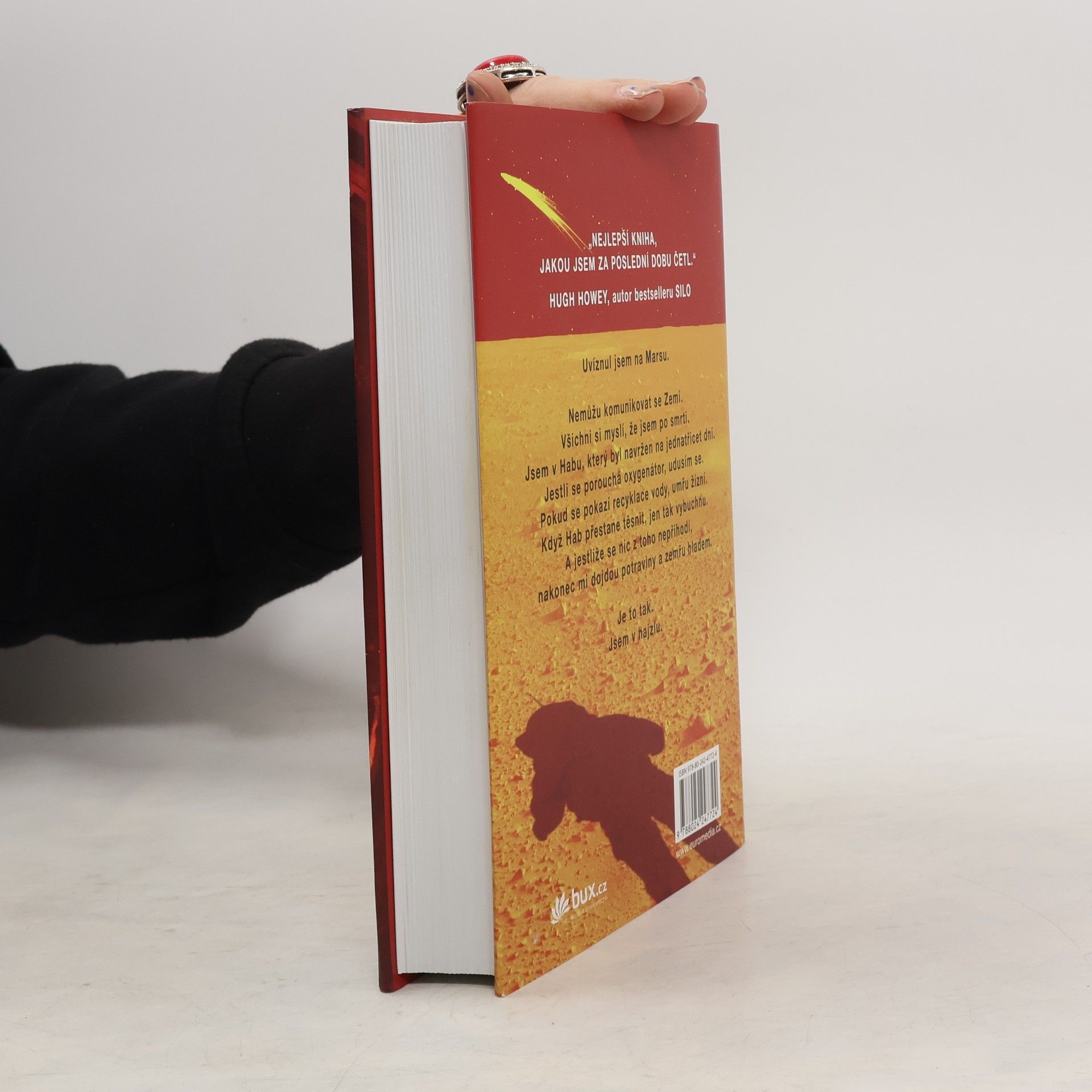 Je nejslavnějším mužem na Zemi. Má to však háček: není na Zemi… Před šesti dny se Mark Watney jako jeden z prvních lidí prošel po Marsu. Teď je přesvědčený, že bude prvním člověkem, který tam zemře. Málem zahynul v prašné bouři a zbytek jeho posádky odletěl v domnění, že je mrtvý. Mark nemá jak odeslat zprávu, že přežil. A i kdyby se s lidmi na Zemi spojit dokázal, zásoby mu dojdou mnohem dřív, než by stačila dorazit pomoc. Mark se však nevzdává. Vyzbrojen pouze svým důvtipem, technickými dovednostmi a nevyčerpatelným smyslem pro humor, který se pro něj stane nejcennějším zdrojem síly, se pouští do tvrdošíjného boje o přežití. Jak zdolává jednu zdánlivě nepřekonatelnou překážku za druhou, začíná věřit, že by na cizí planetě přece jen mohl obstát. Jenže Mars mu ještě přichystá nejedno překvapení… Strhující, podmanivý a přesvědčivý příběh o lidské nezdolnosti a vynalézavosti tváří v tvář beznadějné situaci obletěl celý čtenářský svět a ve všech zemích, kde vychází, sklízí nadšený ohlas. Zaujal i filmové tvůrce, režisér Ridley Scott točí adaptaci s Mattem Damonem v hlavní roli.
