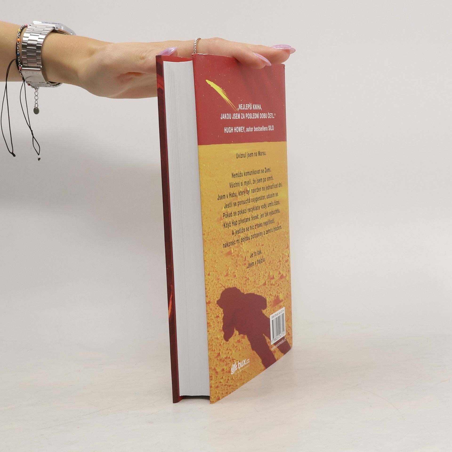 Je nejslavnějším mužem na Zemi. Má to však háček: není na Zemi… Před šesti dny se Mark Watney jako jeden z prvních lidí prošel po Marsu. Teď je přesvědčený, že bude prvním člověkem, který tam zemře. Málem zahynul v prašné bouři a zbytek jeho posádky odletěl v domnění, že je mrtvý. Mark nemá jak odeslat zprávu, že přežil. A i kdyby se s lidmi na Zemi spojit dokázal, zásoby mu dojdou mnohem dřív, než by stačila dorazit pomoc. Mark se však nevzdává. Vyzbrojen pouze svým důvtipem, technickými dovednostmi a nevyčerpatelným smyslem pro humor, který se pro něj stane nejcennějším zdrojem síly, se pouští do tvrdošíjného boje o přežití. Jak zdolává jednu zdánlivě nepřekonatelnou překážku za druhou, začíná věřit, že by na cizí planetě přece jen mohl obstát. Jenže Mars mu ještě přichystá nejedno překvapení… Strhující, podmanivý a přesvědčivý příběh o lidské nezdolnosti a vynalézavosti tváří v tvář beznadějné situaci obletěl celý čtenářský svět a ve všech zemích, kde vychází, sklízí nadšený ohlas. Zaujal i filmové tvůrce, režisér Ridley Scott točí adaptaci s Mattem Damonem v hlavní roli.