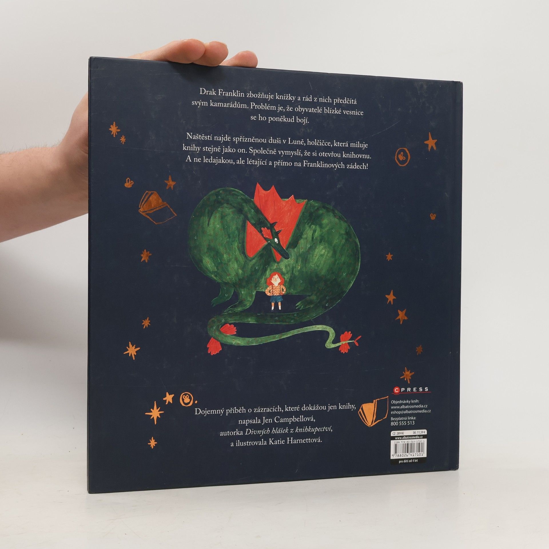 Pohádkový příběh, který v dětech probudí lásku ke knihám. Drak Franklin zbožňuje knížky a rád z nich předčítá svým kamarádům. Problém je, že obyvatelé blízké vesnice se ho poněkud bojí. Naštěstí najde spřízněnou duši v Luně, holčičce, která miluje knihy stejně jako on. Společně vymyslí, že si otevřou knihovnu. A ne ledajakou, ale létající a přímo na Franklinových zádech!