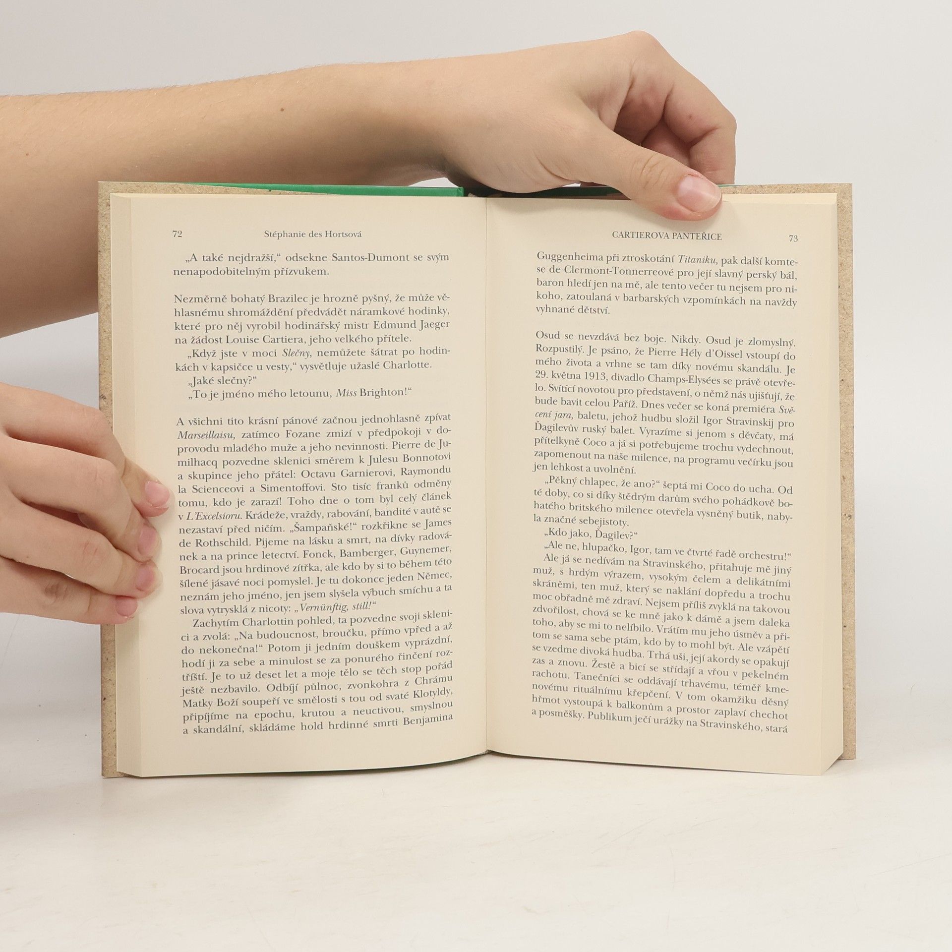 Podivuhodný příběh Jeanne Toussaintové, ženy, která se stala klenotem firmy Cartier... Ze zneužívaného děvčátka z chudé bruselské rodiny se stane nejznámější kurtizána Paříže. Oslnivá, elegantní, vydržovaná bohatými aristokraty. Pařížská smetánka se oddává prostopášnostem a radovánkám. Večírky ve velkém stylu střídají plesy, belle époque je v plném proudu. Jeanne jde z náruče do náruče – obdivovaná, leč opovrhovaná. Muži si vždycky berou jiné, ty počestné. A pak jí cestu zkříží Louis Cartier, nejslavnější klenotník světa. Říše diamantů a zlata se otevírá. Jeanne, zamilovaná do šperků, popustí uzdu fantazii a vymýšlí pro něj ty nejkrásnější klenoty. Hlavy států si u nich podávají dveře, králové, mahárádžové... Téměř celým stoletím prochází tato neobyčejná žena s hlavou vztyčenou, vzdoruje nacistům stejně jako démonům vlastní minulosti. Vášnivý příběh vyprávěný v první osobě vtáhne čtenáře rovnou do magického světa, kde Coco Chanel navrhuje své první skandální modely, dámy šílí z baletu uhrančivého Ďagileva a v baru popíjí Ernest Hemingway...