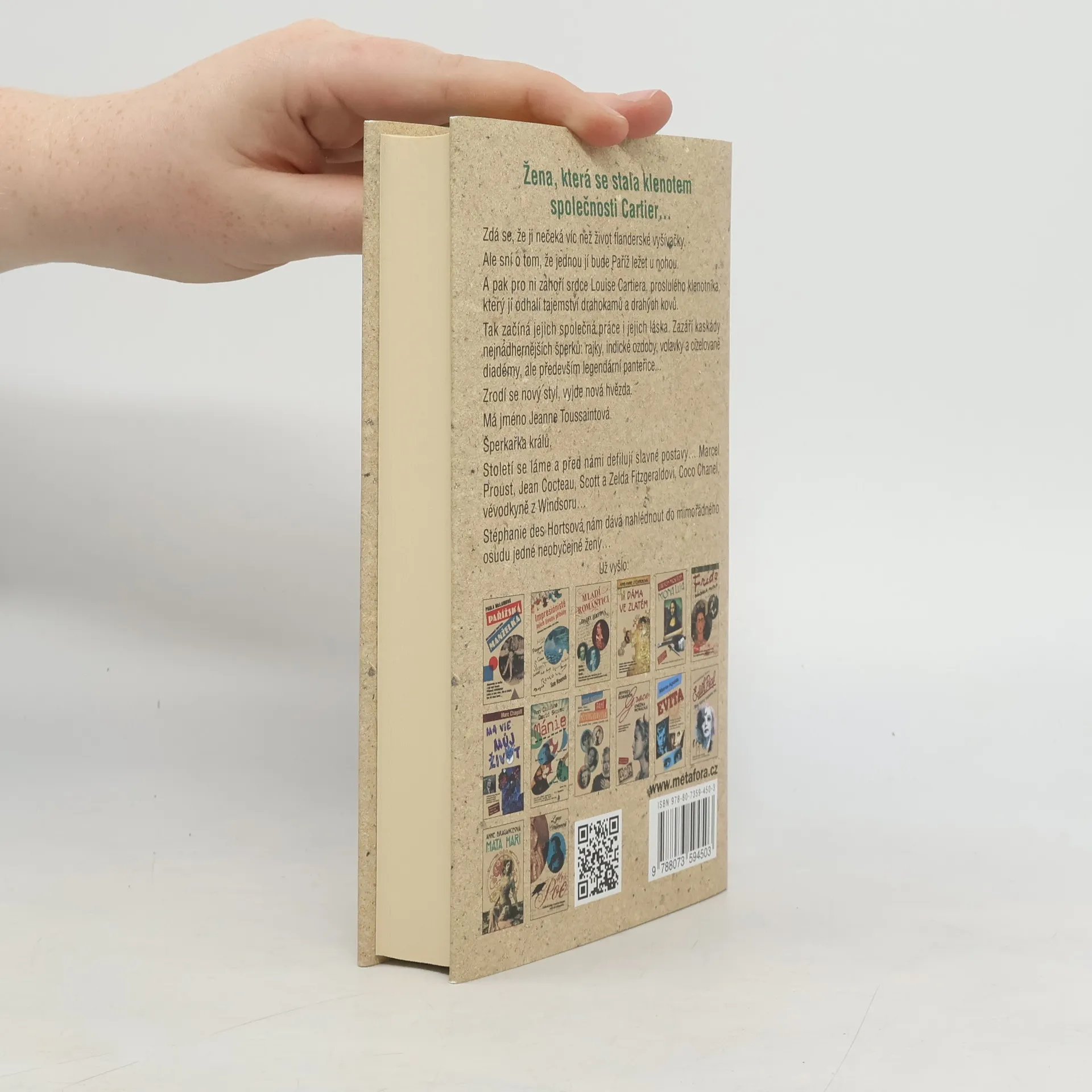 Podivuhodný příběh Jeanne Toussaintové, ženy, která se stala klenotem firmy Cartier... Ze zneužívaného děvčátka z chudé bruselské rodiny se stane nejznámější kurtizána Paříže. Oslnivá, elegantní, vydržovaná bohatými aristokraty. Pařížská smetánka se oddává prostopášnostem a radovánkám. Večírky ve velkém stylu střídají plesy, belle époque je v plném proudu. Jeanne jde z náruče do náruče – obdivovaná, leč opovrhovaná. Muži si vždycky berou jiné, ty počestné. A pak jí cestu zkříží Louis Cartier, nejslavnější klenotník světa. Říše diamantů a zlata se otevírá. Jeanne, zamilovaná do šperků, popustí uzdu fantazii a vymýšlí pro něj ty nejkrásnější klenoty. Hlavy států si u nich podávají dveře, králové, mahárádžové... Téměř celým stoletím prochází tato neobyčejná žena s hlavou vztyčenou, vzdoruje nacistům stejně jako démonům vlastní minulosti. Vášnivý příběh vyprávěný v první osobě vtáhne čtenáře rovnou do magického světa, kde Coco Chanel navrhuje své první skandální modely, dámy šílí z baletu uhrančivého Ďagileva a v baru popíjí Ernest Hemingway...