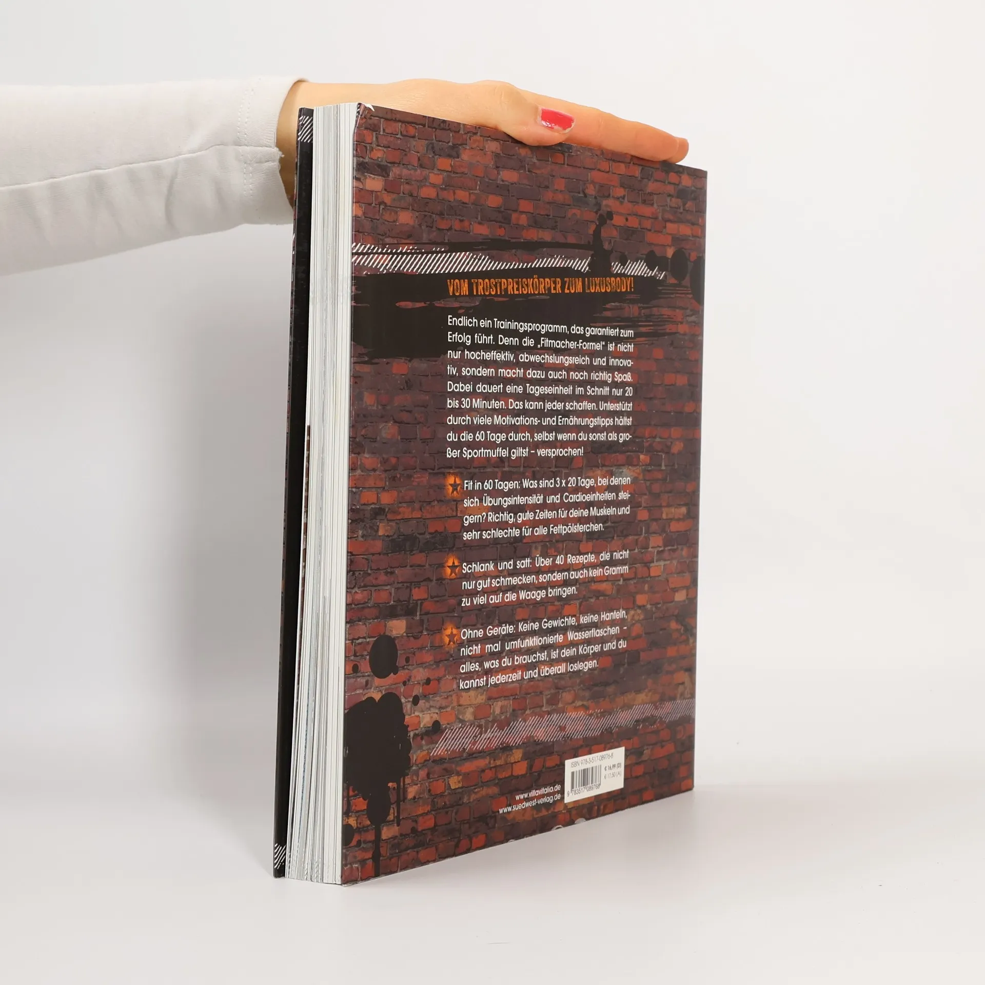 Vom Trostpreiskörper zum Luxusbody! „Die Fitmacher-Formel” ist ein Trainingsprogramm, das garantiert zum Erfolg führt. Denn die Übungskombinationen sind nicht nur hocheffektiv, abwechslungsreich und innovativ, sondern machen dazu auch noch richtig Spaß. Dabei dauert eine Tageseinheit im Schnitt nur 20 bis 30 Minuten. Kombiniert mit den Motivationstipps von Marco Santoro halten Sie die 60 Tage durch, selbst wenn Sie sonst als großer Sportmuffel gelten – versprochen! Das Programm ist in drei Phasen je 20 Tage aufgeteilt, wobei sich Übungsintensität und Kardioeinheiten steigern: Also, gute Zeiten für Ihre Muskeln und sehr schlechte für alle Fettpölsterchen. Das Beste daran: Sie brauchen genau 0 Geräte und können jederzeit und überall loslegen. Ergänzt mit einfachen Tipps rund um die Ernährung und zahlreichen Rezeptideen ist der Titel dieses Buches kein leeres Versprechen, sondern Sie werden sich nach 60 Tagen selbst kaum wiedererkennen!