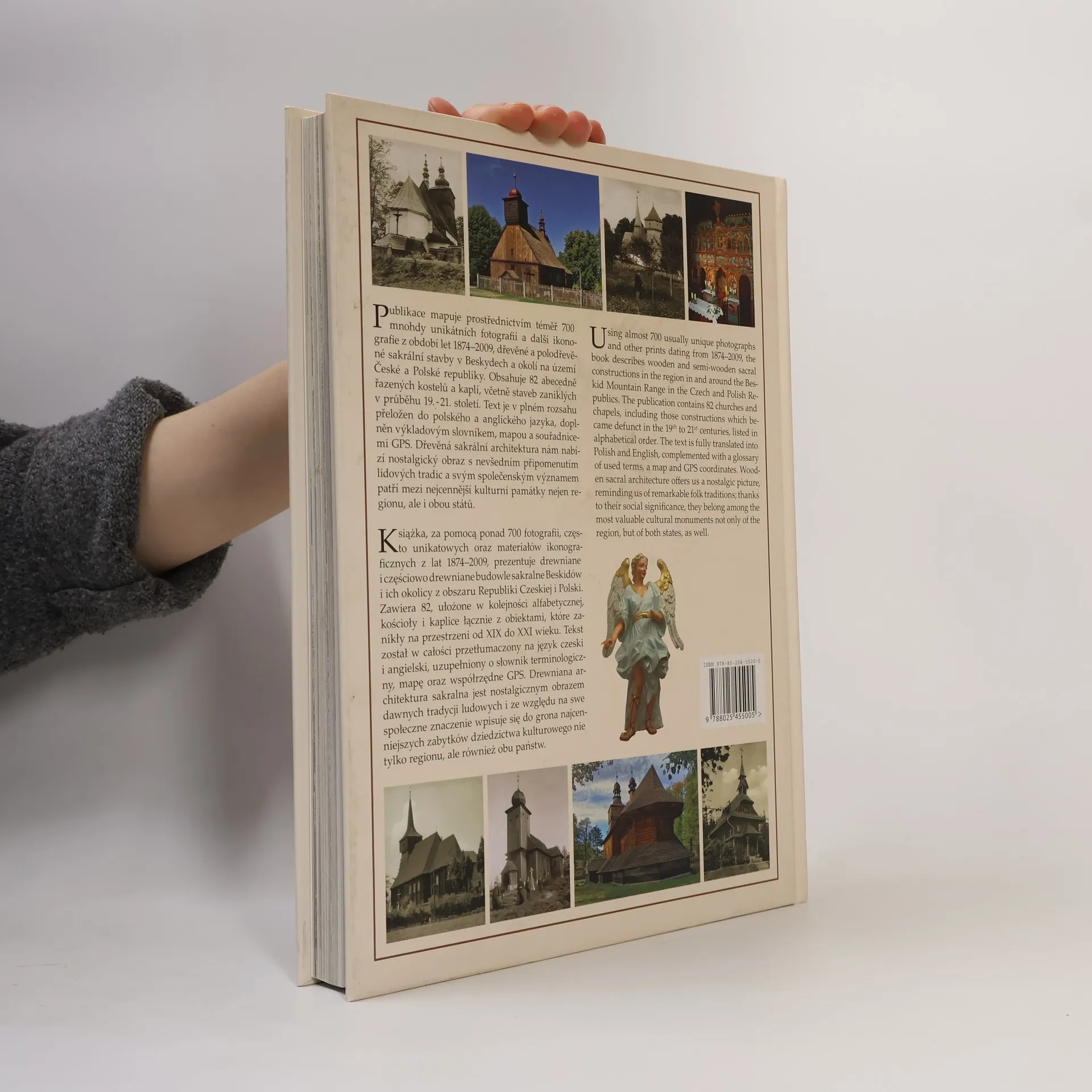 Publikace mapuje prostřednictvím téměř 700 mnohdy unikátních fotografií a další ikonografie z období let 1874-2009 dřevěné a polodřevěné sakrální stavby v Beskydech a okolí na území České a Polské republiky. Obsahuje 82 abecedně řazených kostelů a kaplí, včetně staveb zaniklých v průběhu 19. - 21. století. Text je v plném rozsahu přeložen do polského a anglického jazyka, doplněn výkladovým slovníkem, mapou a souřadnicemi GPS. Dřevěná sakrální architektura nám nabízí nostalgický obraz s nevšedním připomenutím lidových tradic a svým společenským významem patří mezi nejcennější kulturní památky nejen regionu, ale i obou států.