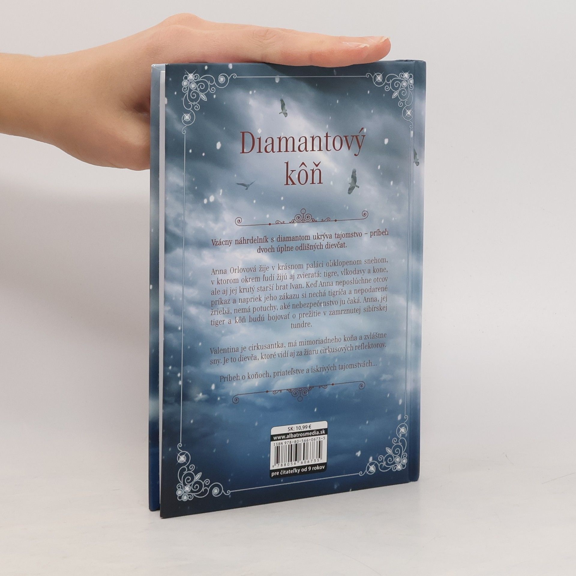 Vzácny náhrdelník s diamantom ukrýva tajomstvo — príbeh dvoch úplne odlišných dievčat. Anna Orlovová žije v krásnom paláci obklopenom snehom, v ktorom okrem ľudí žijú aj zvieratá: tigre, vlkodavy a kone, ale aj jej krutý starší brat Ivan. Keď Anna neposlúchne otcov príkaz a napriek jeho zákazu si nechá tigríča a nepodarené žriebä, nemá potuchy, aké nebezpečenstvo ju čaká. Anna, jej tiger a kôň budú bojovať o prežitie v zamrznutej sibírskej tundre. Valentina je cirkusantka, má mimoriadneho koňa a zvláštne sny. Je to dievča, ktoré vidí aj za žiaru cirkusových reflektorov. Príbeh o koňoch, priateľstve a iskrivých tajomstvách...