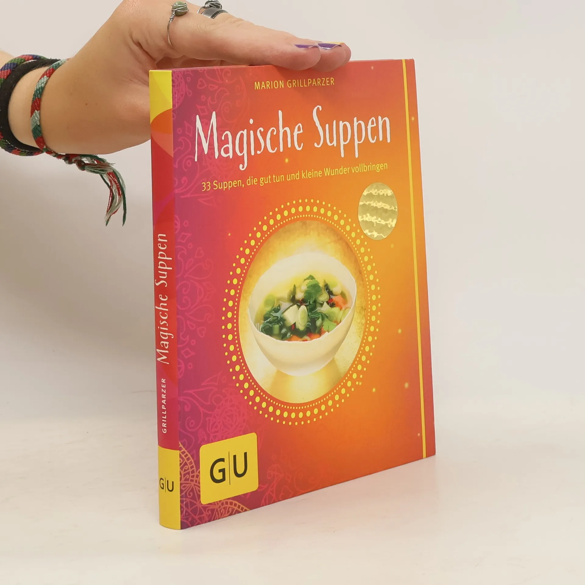 Er ist wieder da: der Erfolgstitel Magische Suppen von Marion Grillparzer, ergänzt, überarbeitet und liebevoll ausgestattet als Geschenkbuch. Ein Buch mit wunderbaren Rezepten, die gut tun und kleine Wunder vollbringen. Und es gibt ja viele Gründe die leckeren Rezepte auch wirklich zu kochen: sie bringen mehr Lebensenergie, machen schlank, wirken gegen Frühjahrsmüdigkeit, vertreiben die Erkältung, lassen die Muskeln wachsen oder machen Männern Lust - um nur eine kleine Auswahl der Gründe zu nennen. Mehr zu den Suppen und warum sie ihre magische Wirkung entfalten, erfahren Sie in den humorvollen und unterhaltsamen Geschichten, in die jedes Rezept verpackt ist. Ein kleines schnuckeliges Buch zum Schmökern und Genießen.
