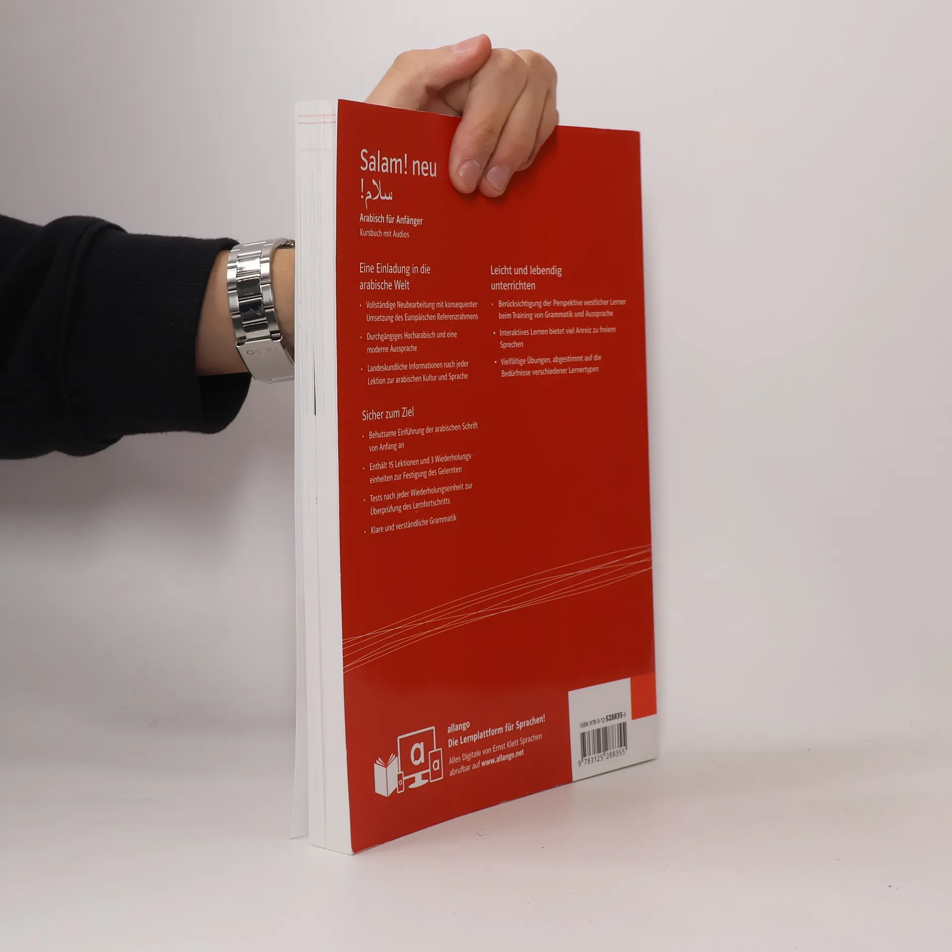 Eine Einladung in die arabische Welt Vollständige Neubearbeitung mit konsequenter Umsetzung des Europäischen Referenzrahmens Durchgängiges Hocharabisch und eine moderne Aussprache Landeskundliche Informationen nach jeder Lektion zur arabischen Kultur und Sprache Sicher zum Ziel Behutsame Einführung der arabischen Schrift von Anfang an Enthält 15 Lektionen und Wiederholungseinheiten zur Festigung des Gelernten Tests nach jeder Wiederholungseinheit zur Überprüfung des Lernfortschritts Klare und verständliche Grammatik Leicht und lebendig unterrichten Berücksichtigung der Perspektive westlicher Lerner durch Training von Grammatik und Aussprache Interaktives Lernen bietet viel Anreiz zu freiem Sprechen Vielfältige Übungen, abgestimmt auf die Bedürfnisse verschiedener Lernertypen