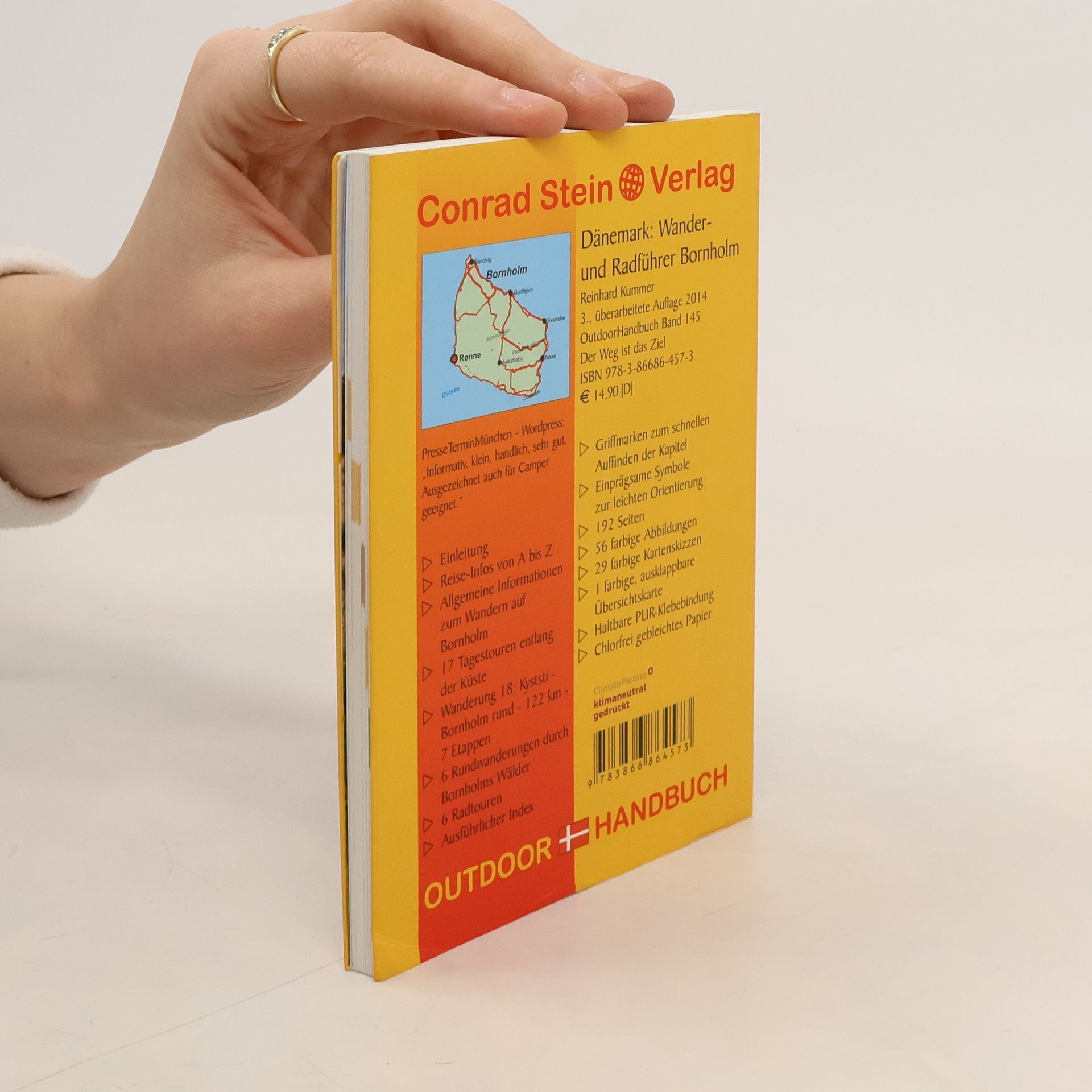 Bornholm, die Insel in der südlichen Ostsee nahe der südschwedischen Küste, gehört zum Königreich Dänemark und zählt zu den schönsten und vielseitigsten Inseln der Ostsee. Herausragend ist die Küstenlandschaft aus Fels und Sand, die auf kleinem Raum sehr unterschiedliche Formationen hervorgebracht hat, die über spannende Küstenpfade erschlossen und auf denen herrliche Wanderungen möglich sind. Die Wälder im Inselinneren locken mit spannenden Rundwegen und die hübschen kleinen Küstenorte laden zum Verweilen ein. Radfahrer können auf ein gut ausgebautes Radwegenetz zurückgreifen, welches Natur und Kultur an Küste und Inland berührt und ebenfalls abwechslungsreiche Strecken und Rundtouren bietet. Das Buch ist in erster Linie für Aktivurlauber geschrieben, die einen genussvollen, abwechslungsreichen und doch sportlichen Urlaub verbringen wollen. Die vorgeschlagenen Touren verlangen ein gewisses Maß an körperlicher Fitness und sind eigentlich für jedermann/frau machbar. Sie können wunderbar in einen 14-tägigen Bornholmurlaub eingebaut werden, sodass trotzdem noch Zeit für eigenes Erleben und Erkunden bleibt. Das handliche kleine Format ist ideal für unterwegs. Übersichtskarte in der Umschlagklappe.