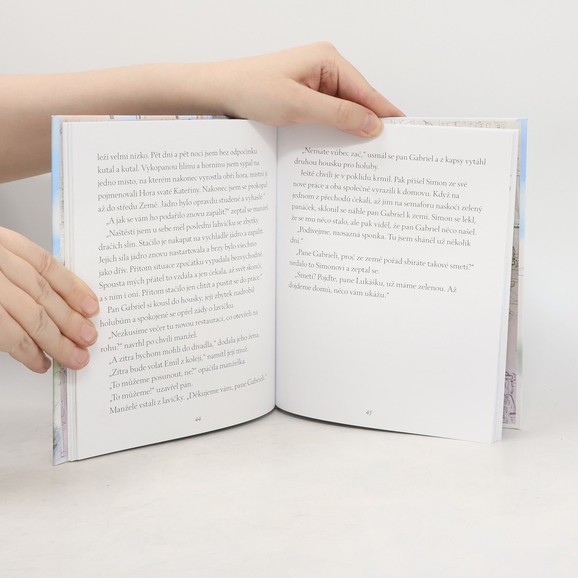 V jednom sousedství žil byl pan Gabriel. Ten každý den chodil do místního parku, kde krmil holuby. A k drobkům starého pečiva přidával i historky ze svého života. Ty byly tak neuvěřitelné, že je lidé z jeho okolí nebrali vážně. To však neznamená, že by se jim nelíbily. Naopak. Pana Gabriela s chutí poslouchaly všechny generace, které do parku chodily. A nejen to. Jeho příběhy posluchačům pomáhaly i v jejich vlastním životě. Brali si z nich poučení, nápady a inspiraci. Byly jeho příběhy pravdivé? Kdo ví…
