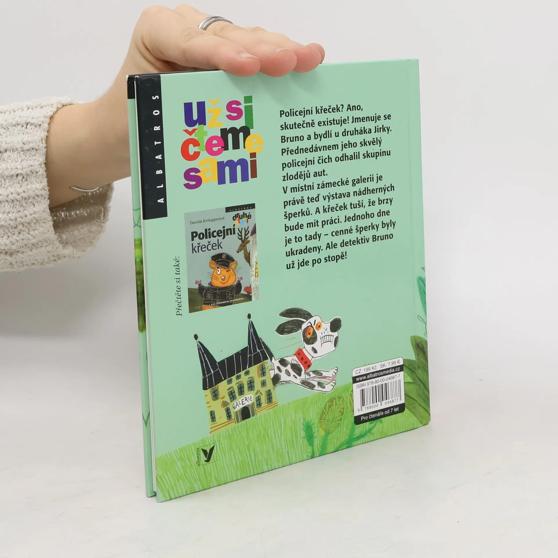 Policejní křeček? Ano, skutečně existuje! Jmenuje se Bruno a bydlí u druháka Jirky. Přednedávnem jeho skvělý policejní čich odhalil skupinu zlodějů aut. V místní zámecké galerii je právě teď výstava nádherných šperků. A křeček tuší, že brzy bude mít práci. Jednoho dne je to tady – cenné šperky byly ukradeny. Ale detektiv Bruno už jde po stopě! Volné pokračování knížky Policejní křeček.