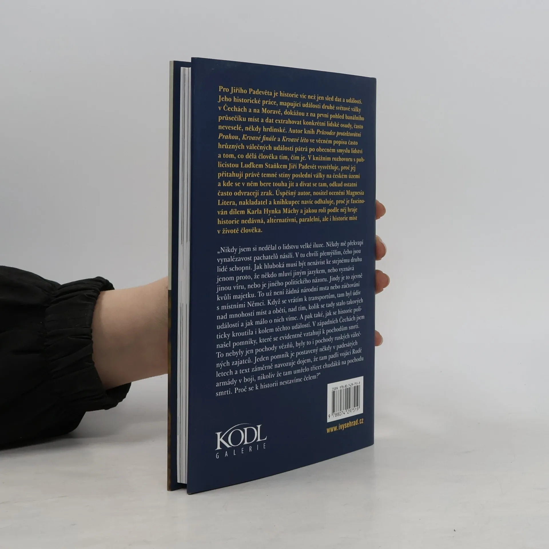 Pro Jiřího Padevěta je historie víc než jen sled dat a událostí. Jeho historické práce, mapující události druhé světové války v Čechách a na Moravě, dokážou z na první pohled banálního průsečíku míst a dat extrahovat konkrétní lidské osudy, často neveselé, někdy hrdinské. Autor knih Průvodce protektorátní Prahou, Krvavé finále a Krvavé léto ve věcném popisu často hrůzných válečných událostí pátrá po obecném smyslu lidství a tom, co dělá člověka tím, čím je. V knižním rozhovoru s publicistou Luďkem Staňkem Jiří Padevět vysvětluje, proč jej přitahují právě temné stíny poslední války na českém území a kde se v něm bere touha jít a dívat se tam, odkud ostatní často odvracejí zrak. Úspěšný autor, nositel ocenění Magnesia Litera, nakladatel a knihkupec navíc odhaluje, proč je fascinován dílem Karla Hynka Máchy a jakou roli podle něj hraje historie nedávná, alternativní, paralelní, ale i historie míst v životě člověka.