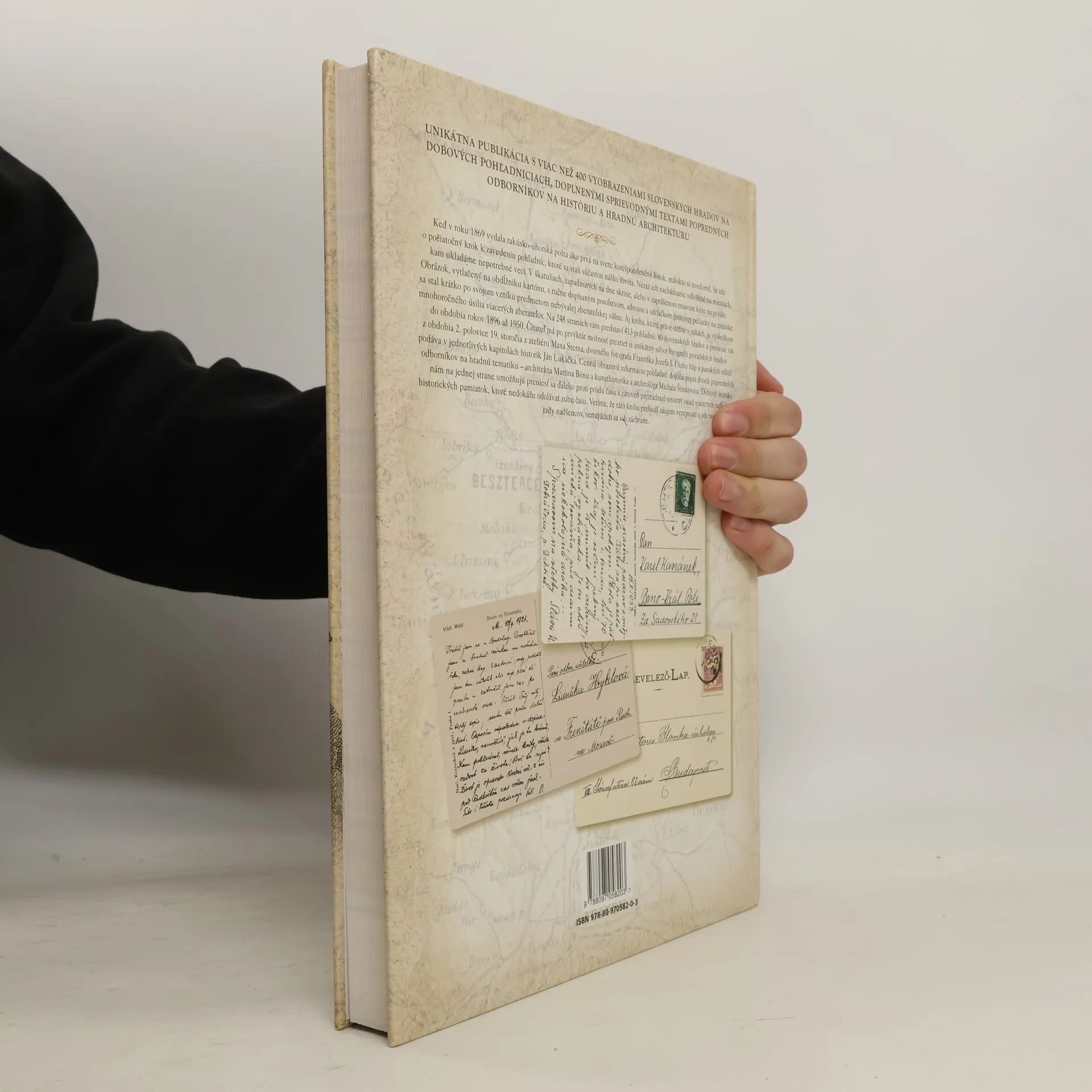 Unikátna publikácia obsahuje viac než 400 vyobrazení slovenských hradov na dobových pohľadniciach, doplnených odbornými textami. Keď rakúsko-uhorská pošta v roku 1869 vydala prvý korešpondenčný lístok, málokto predpokladal, že to spustí éru pohľadníc, ktoré sa stali súčasťou každodenného života. Tieto pohľadnice často nachádzame zabudnuté v škatuliach alebo na povalách. Obrázky s ručne dopísanými posolstvami a poštovými pečiatkami sa rýchlo stali predmetom zberateľskej vášne. Kniha, ktorú držíte v rukách, je výsledkom dlhoročného úsilia zberateľov a na 248 stranách predstavuje 413 pohľadníc 80 slovenských hradov z rokov 1896 až 1950. Po prvýkrát máte možnosť vidieť unikátne fotografie považských hradov z konca 19. storočia od Maxa Sterna, dvorného fotografa Františka Jozefa I. Historik Ján Lukačka podáva prehľad úlohy žúp a panských sídiel, zatiaľ čo architekt Martin Bóna a kunsthistorik Michal Šimkovic dopĺňajú cenné obrazové informácie. Dobové snímky umožňujú preniesť sa do minulosti a odhaľujú smutný osud mnohých historických pamiatok, ktoré trpia zubom času. Veríme, že táto kniha prebudí záujem o ich ochranu a zachovanie.