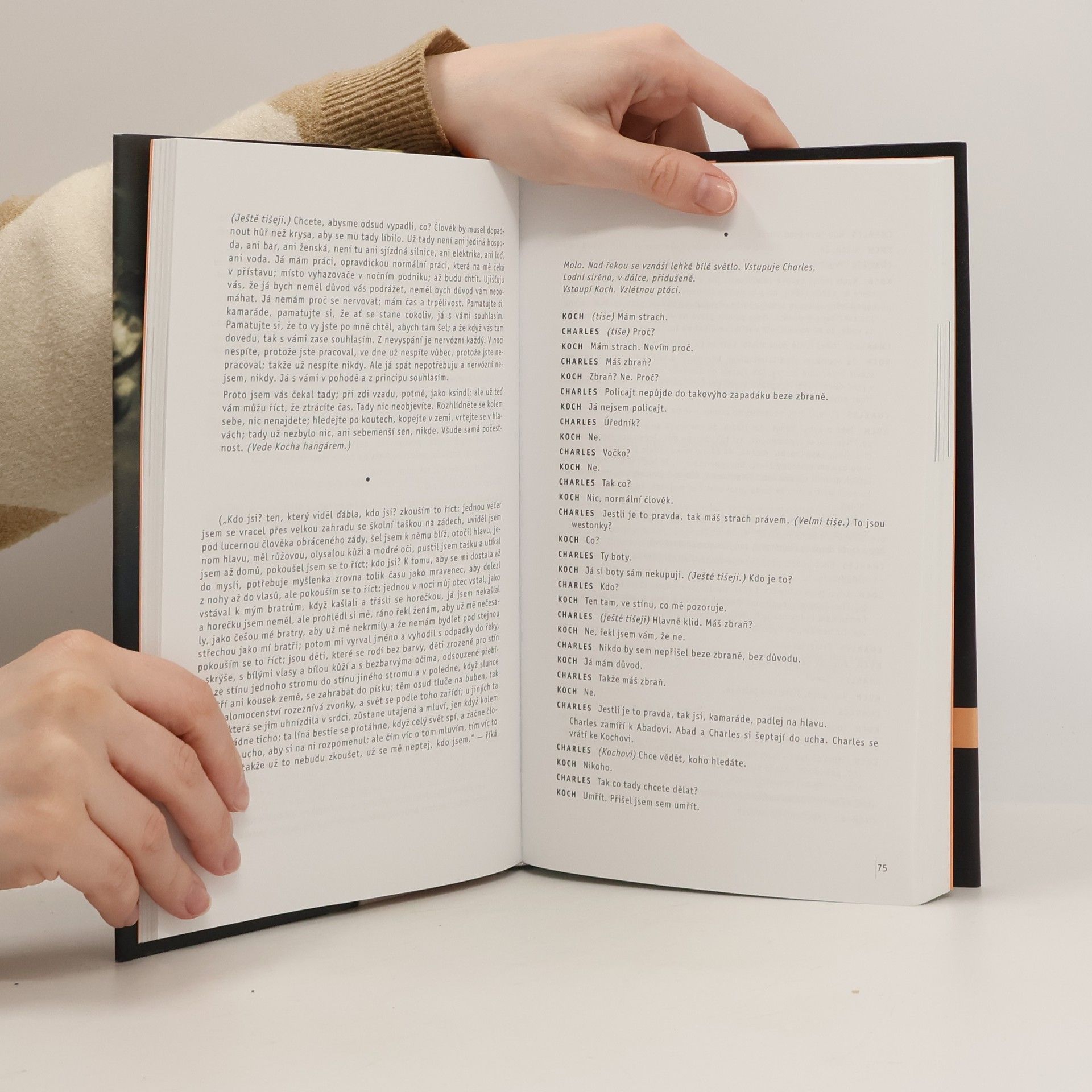 Svazek her Bernarda-Marie Koltese (1948–1989), předčasně zemřelého autora, pokládaného za nejvýraznějšího představitele francouzského dramatu konce 20. století, obsahuje všechny jeho nejvýznamnější dramatické texty, jak dosud přeložené, separátně publikované a uvedené (Boj černocha se psy, 1979 — Návrat do pouště, 1988 — Roberto Zucco, 1988) v revidovaných překladech, tak nové překlady her La Nuit juste avant les forets (Tu noc těsně před lesy, 1977) — Quai Ouest (Západní přístaviště, 1986) — Dans la solitude des champs de coton (V samotě bavlníkových polí, 1985) — Tabataba (1986) — Coco (1988).