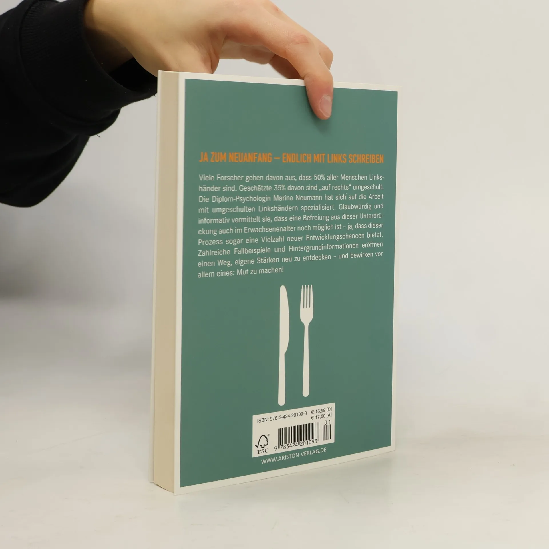 Den Knoten im Gehirn lösen Seit mehr als zehn Jahren beschäftigt sich die Diplom-Psychologin und Psychotherapeutin Marina Neumann mit umgeschulten linkshändigen Kindern, Jugendlichen und Erwachsenen. Sie ist selbst Linkshänderin, wurde aber in der 1. Klasse zum Schreiben mit rechts gezwungen. So kennt sie die problematischen Auswirkungen einer Umerziehung von der linken auf die rechte Hand genau. Glaubwürdig und informativ vermittelt Marina Neumann, die sich im Alter von 47 Jahren erfolgreich auf das Schreiben mit links zurückgeschult hat, dass eine Befreiung aus dieser Unterdrückung auch im Erwachsenenalter noch möglich ist – ja dass dieser Prozess sogar eine Vielzahl neuer Entwicklungschancen bietet. Viele Fallbeispiele und Hintergrundinformationen eröffnen einen Weg, eigene Stärken neu zu entdecken – und bewirken vor allem eines: neuen Mut zu machen!