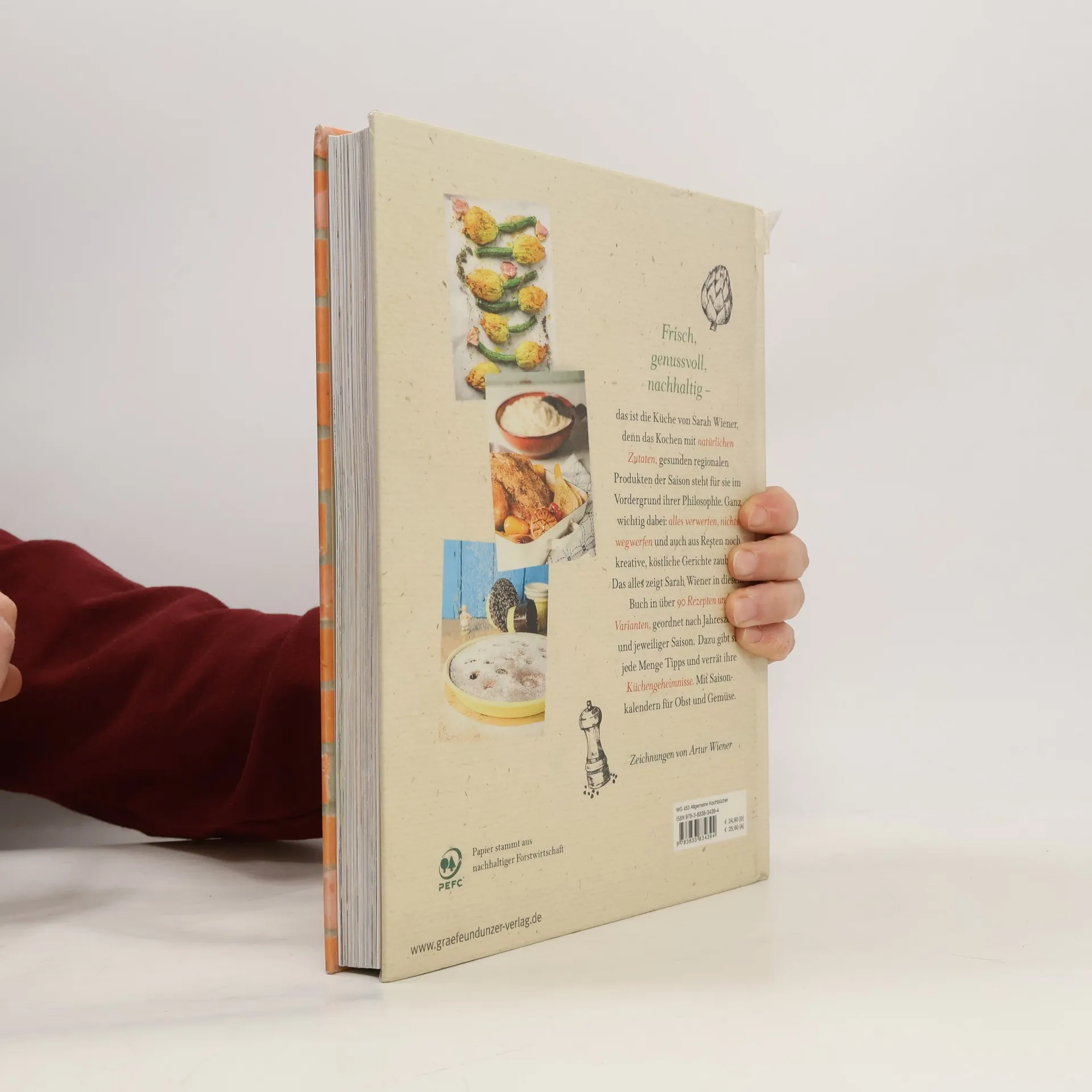 In ihrem neuen Buch zeigt die Meisterköchin in über 90 innovativen Rezepten wie man das ganze Jahr über mit saisonalen Produkten abwechslungsreich kocht. Mit vielen Tricks und Tipps, Varianten zur Resteverwertung, interessanten Infos zu besonderen, in Vergessenheit geratenen Lebensmitteln wie etwa Vogelmiere, Buchweizenbulgur oder Schlesische Himbeere. Mit anregenden Foodfotos und originellen Illustrationen ihres Sohnes Arthur Wiener.