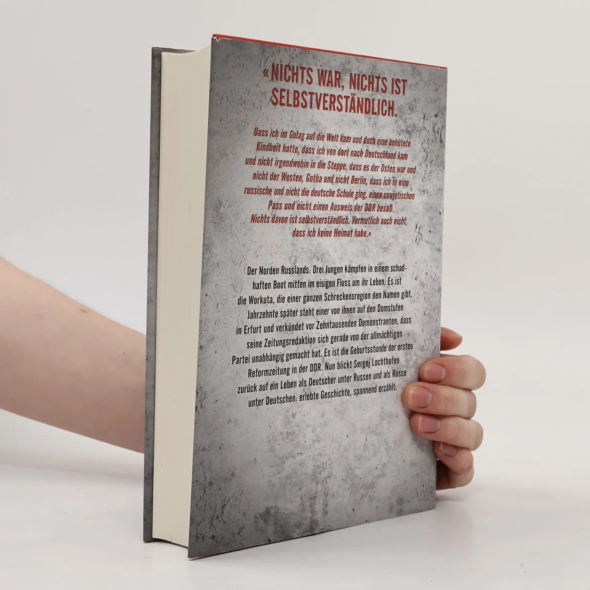 Sergej Lochthofen gehört zur dritten Generation einer deutsch-russischen Familie, die den Stalinismus erlebt und erlitten hat – von der Oktoberrevolution über den Gulag bis zum Mauerfall. In diesem Buch erzählt er, wie er aus Workuta nach Thüringen kam, auf der Straße die Sprache lernte, als einziges Kind eines Zivilisten in eine sowjetische Garnisonsschule ging, von zu Hause ausbrach, um auf der Krim Kunst zu studieren, vor der Einberufung in die Sowjetarmee zurück in die DDR floh und während der bleiernen Honecker-Zeit den stupiden Alltag in einer SED-Zeitung als Journalist erlebte – bis schließlich die aufregende Wendezeit anbrach. Dabei wird deutlich: Die Verschränkung von Deutschland und Russland ist mehr als ein biographischer Zufall. Wer die DDR verstehen will, muss die Sowjetunion mitdenken. «Der Autor ist ein kluger Analytiker und versierter Erzähler, der über eine nuancenreiche, differenzierte Sprache gebietet.» Badische Zeitung