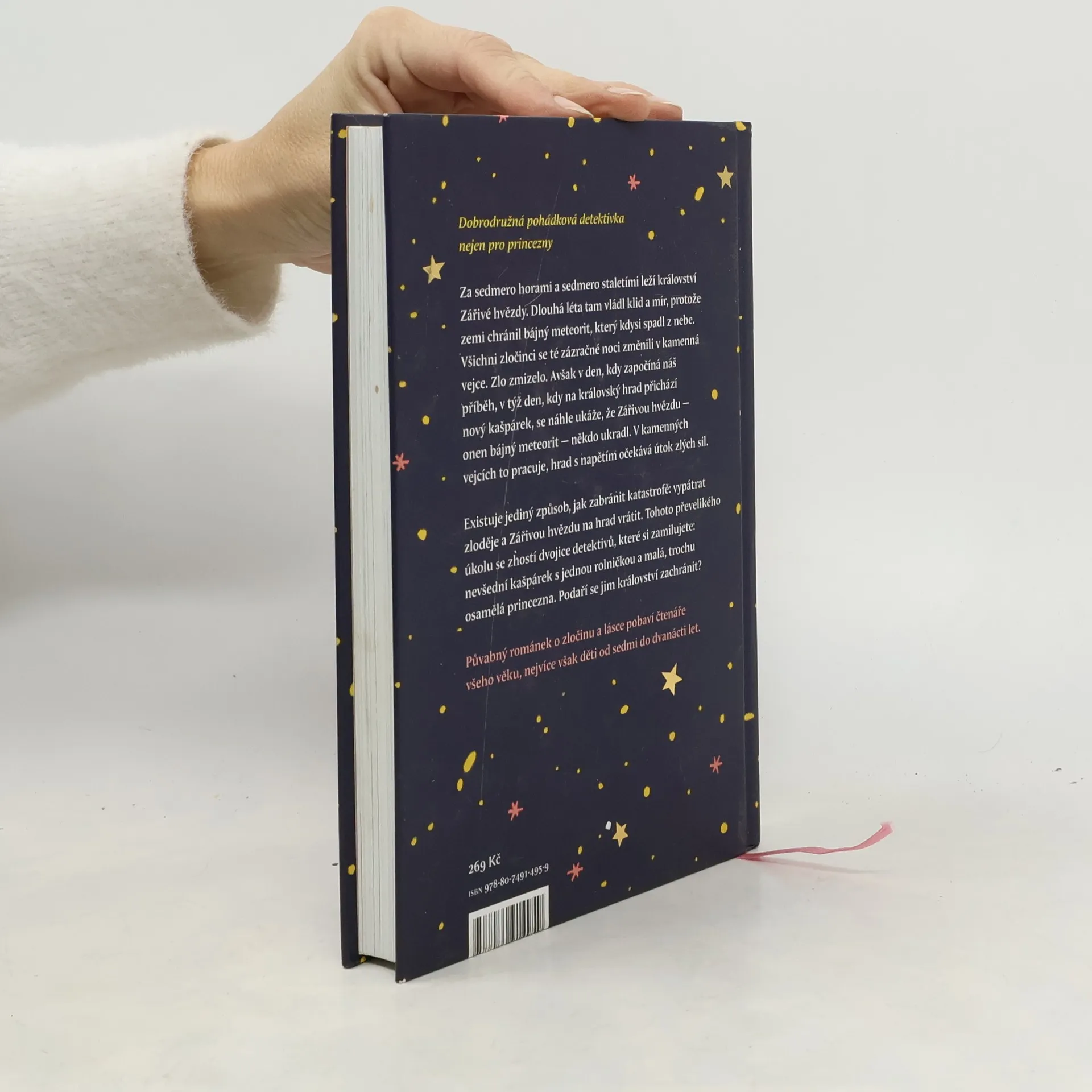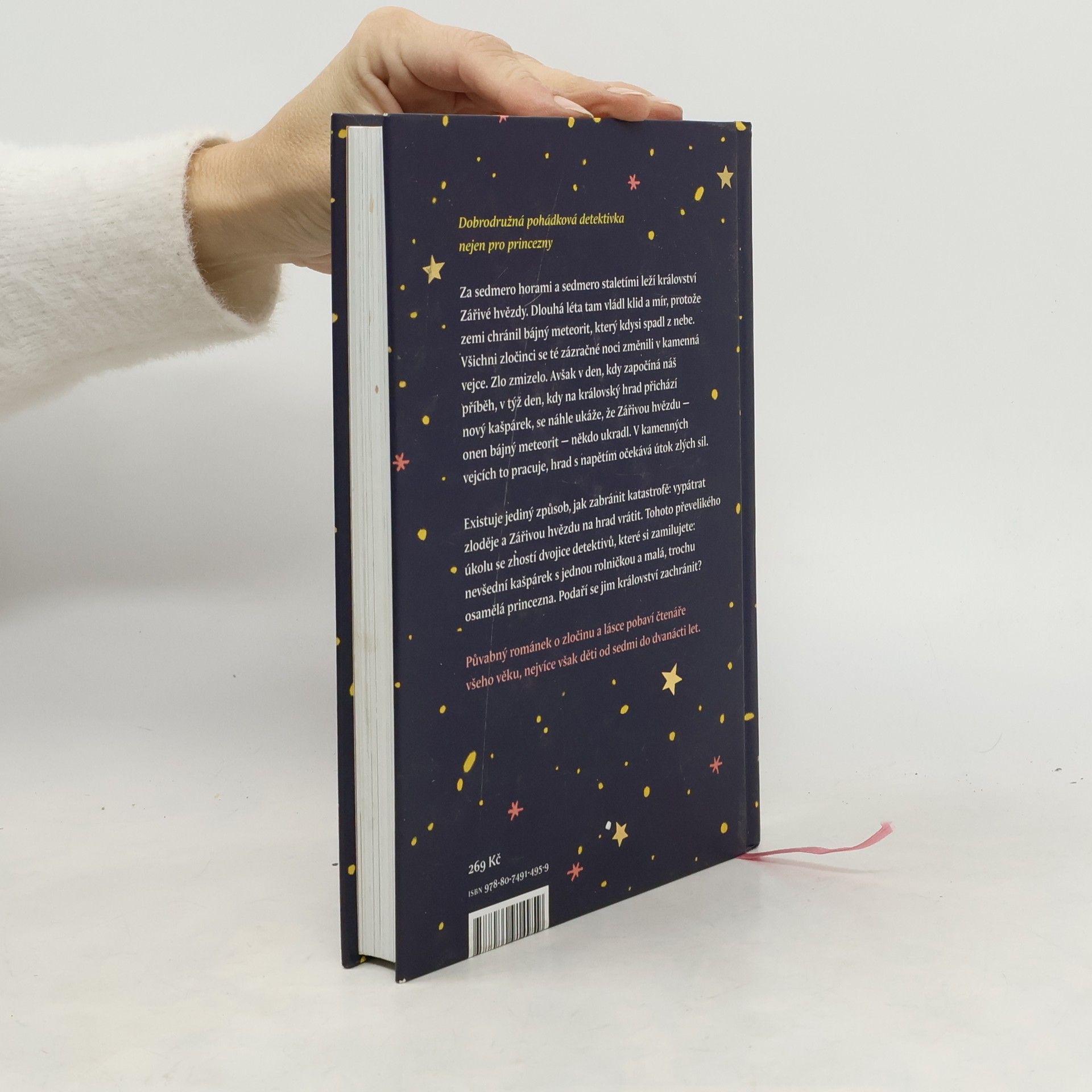 Za sedmero horami a sedmero staletími leží království Zářivé hvězdy. Dlouhá léta tam vládl klid a mír, protože zemi chránil bájný meteorit, který kdysi spadl z nebe. Všichni zločinci se té zázračné noci rázem změnili v kamenná vejce. Zlo zmizelo. Avšak v den, kdy začíná náš příběh, v týž den, kdy na královský hrad přichází nový kašpárek, se náhle ukáže, že Zářivou hvězdu — onen bájný meteorit — někdo ukradl. V kamenných vejcích to pracuje, hrad s napětím očekává útok zlých sil. Existuje jediný způsob, jak zabránit katastrofě: vypátrat zloděje a Zářivou hvězdu na hrad vrátit. Tohoto převelikého úkolu se zhostí dvojice detektivů, které si zamilujete: potutelný kašpárek s jednou rolničkou a malá, trochu osamělá princezna. Podaří se jim království zachránit? Půvabný „románek o zločinu a lásce“ pobaví čtenáře všeho věku, nejvíce však děti od sedmi do dvanácti let.