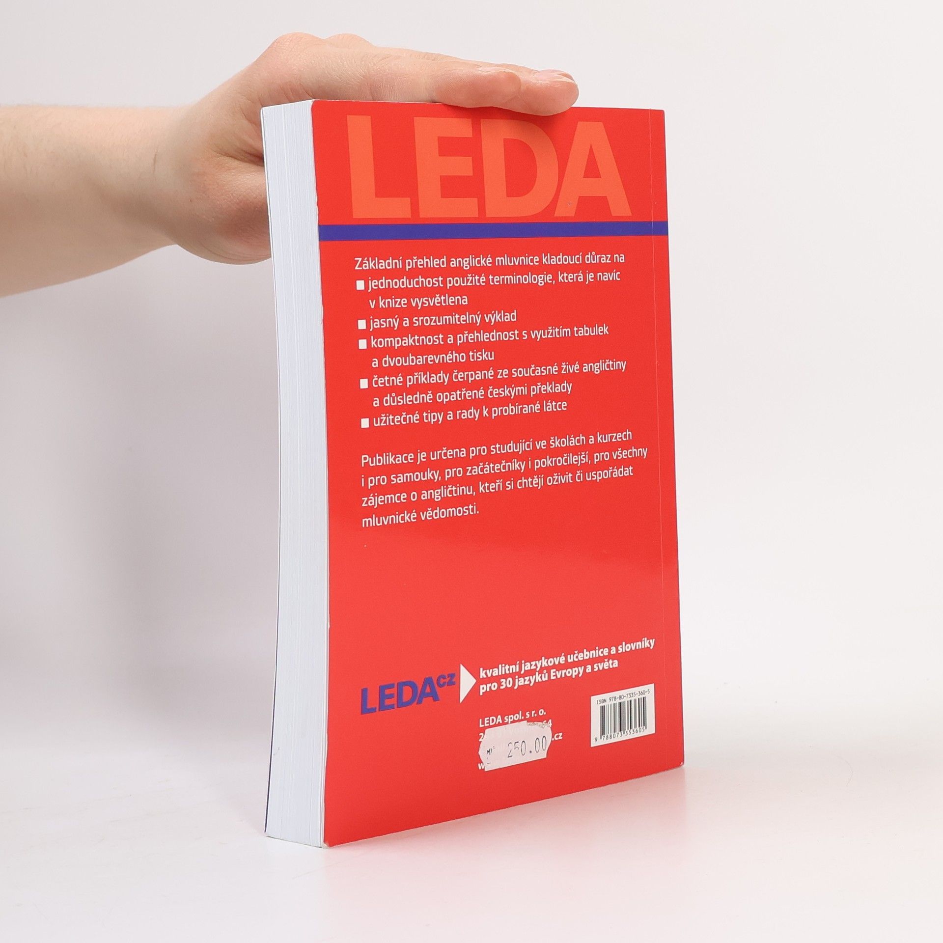 Základní přehled anglické mluvnice kladoucí důraz na jednoduchost použité terminologie, která je navíc v knize vysvětlena, na jasný a srozumitelný výklad, na kompaktnost a přehlednost s využitím tabulek a dvoubarevného tisku, na četné příklady čerpané ze současné živé angličtiny a důsledné opatřené českými překlady, na užitečné tipy a rady k probírané látce. Publikace je určena pro studující ve školách a kurzech i pro samouky, pro začátečníky i pokročilejší, pro všechny zájemce o angličtinu, kteří si chtějí oživit či uspořádat mluvnické vědomosti.