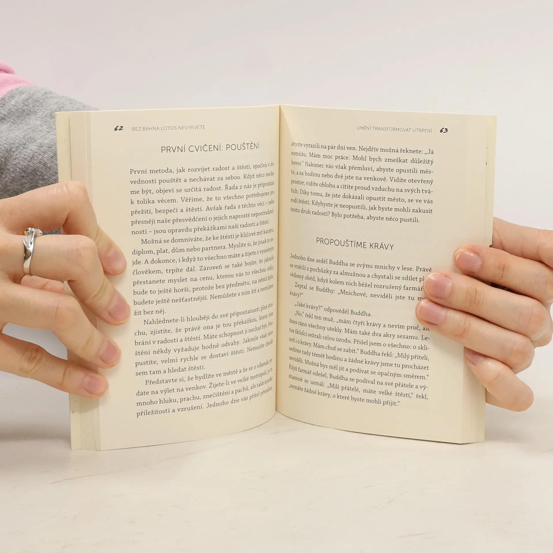 Umění transformovat utrpení. Užívat si štěstí neznamená nezažít utrpení. Když se naučíme svému utrpení rozumět, můžeme trpět daleko méně a být schopni utrpení transformovat v porozumění, soucit a radost. „Většina lidí má z utrpení strach. Utrpení je ale jako bahno, které pomáhá lotosovému květu štěstí vyrůst. Bez bahna lotosy nevykvetou.“ Thich Nhat Hanh je buddhistický mnich, zenový mistr, učitel, spisovatel, básník a mírový aktivista. Jeho učení o umění žít v přítomném okamžiku se šíří celým světem. Narodil se ve Vietnamu v roce 1926 a v šestnácti letech vstoupil do buddhistického kláštera. Ze války ve Vietnamu se věnoval angažovanému buddhismu. V roce 1967 byl Martinem Lutherem Kingem nominován na Nobelovu cenu za mír, od 1973 žije v exilu ve Francii. Je považován za průkopníka buddhistického učení na Západě, založil síť klášterů a meditačních center, prvním z bylo Plum Village v jihozápadní Francii. „V každém našem centru po celém světě máme lotosové jezírko. Všichni vědí, že potřebujeme bahno, aby nám lotosy rostly. Bahno nevoní úplně nejlíp, zato lotosové květy voní moc dobře. Pokud nemáte bahno, lotosy se neukážou. Nemůžete pěstovat lotosy na mramoru. Bez bahna by tu žádné lotosy nebyly.“
