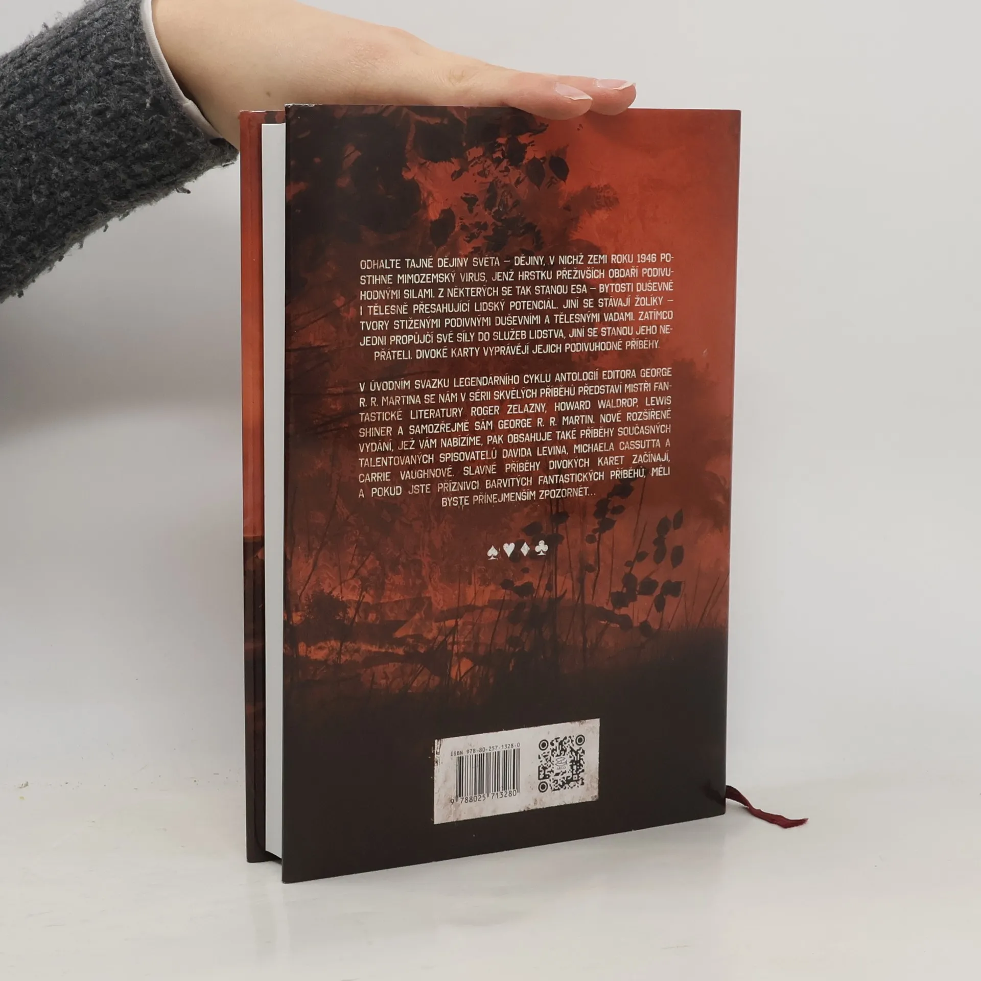 Odhalte tajné dějiny světa – dějiny, v nichž Zemi roku 1946 postihne mimozemský virus, jenž hrstku přeživších obdaří podivuhodnými silami. Z některých se tak stanou Esa – bytosti duševně i tělesně přesahující lidský potenciál. Jiní se stávají Jokery – bytostmi stiženými podivnými duševními a tělesnými vadami. Zatímco někteří propůjčí své síly do služeb lidstva, jiní se stanou jeho nepřáteli. Divoké karty vyprávějí jejich podivuhodné příběhy. V úvodním svazku legendární série antologií editora George R. R. Martina se nám v sérii skvělých příběhů představí mistři fantastické literatury Roger Zelazny, Howard Waldrop, Lewis Shiner a samozřejmě sám George R. R. Martin. Nové rozšířené vydání, jež vám nabízíme, pak obsahuje také příběhy současných talentovaných spisovatelů Davida Levina, Michaela Cassutta a Carrie Vaughnové. Slavné příběhy Divokých karet začínají, a pokud jste příznivci barvitých fantastických příběhů, rozhodně si je nenechte za žádnou cenu ujít…