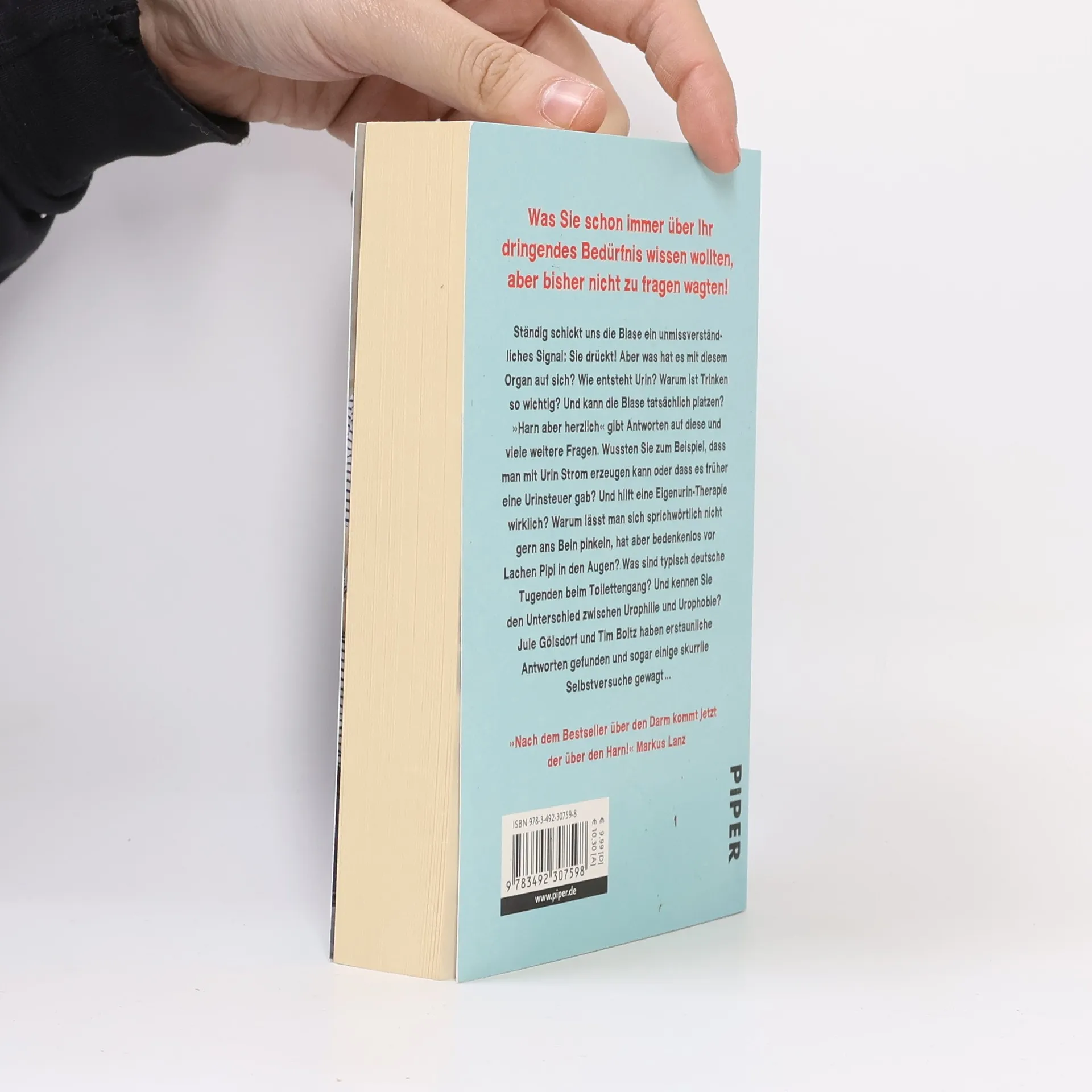 Ständig schickt uns der Körper ein unmissverständliches Signal: Die Blase drückt! Aber was passiert, wenn wir es ignorieren? Kann die Blase wirklich platzen? Warum ist Trinken überhaupt so wichtig? Und nein, Alkohol ist damit nicht gemeint! »Harn aber herzlich« gibt Antworten auf viele skurrile Fragen rund um das Stille Örtchen und die dringenden Bedürfnisse. Wussten Sie zum Beispiel, wo die schönste Toilette der Welt steht? Warum lässt man sich sprichwörtlich nicht gern ans Bein pinkeln, hat aber bedenkenlos vor Lachen Pipi in den Augen? Profitieren Sie von diesem ultimativen Klo-Buch samt der exklusiven TOP-Liste »33 places to pee before you die«!
