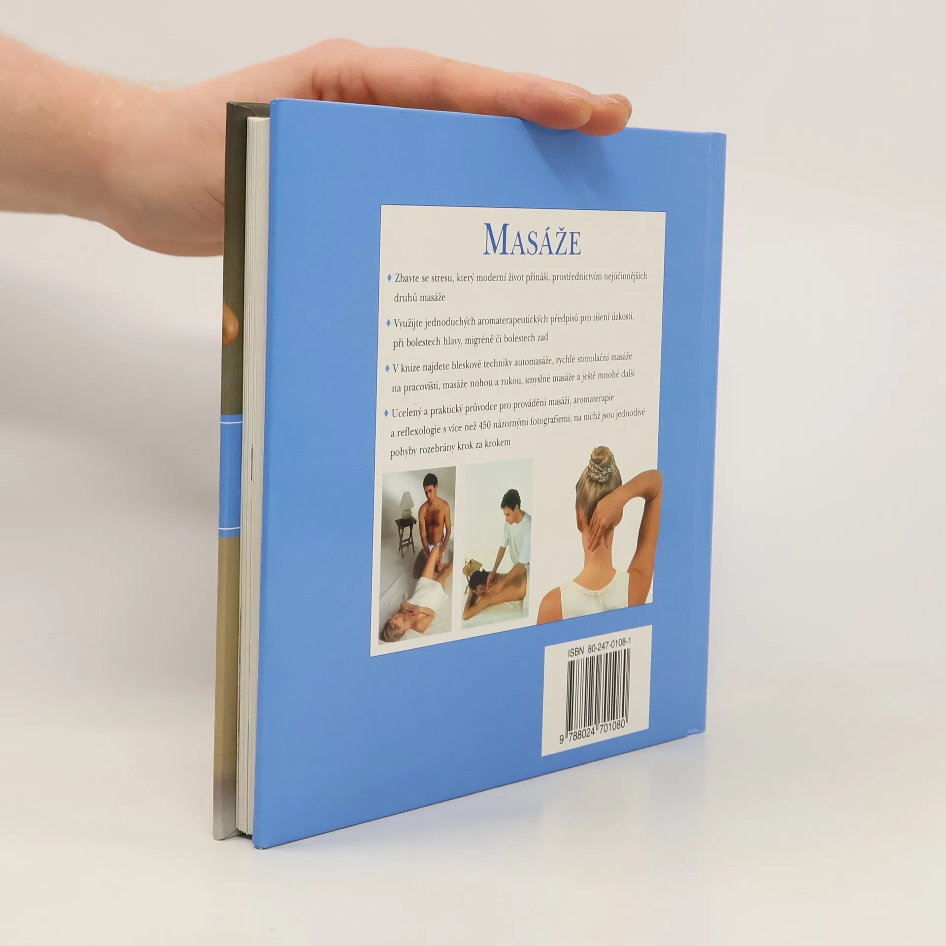 Zbavte se stresu, který moderní život přináší, prostřednictvím nejúčinnějších druhů masáže. Využijte jednoduchých aromaterapeutických předpisů pro tišení úzkosti, při bolestech hlavy, migréně či bolestech zad. V knize najdete bleskové techniky automasáže, rychlé stimulační masáže na pracovišti, masáže nohou a rukou, smyslné masáže a ještě mnohé další. Ucelený a praktický průvodce pro provádění masáží, aromaterapie a reflexologie s více než 450 názornými fotografiemi, na nichž jsou jednotlivé pohyby rozebrány krok za krokem.