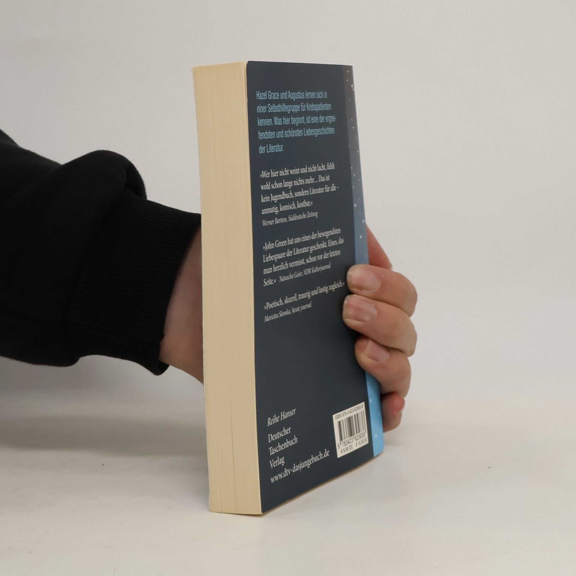 „Krebsbücher sind doof“, sagt die 16-jährige Hazel, die selbst Krebs hat. Sie will auf gar keinen Fall bemitleidet werden und kann mit Selbsthilfegruppen nichts anfangen. Bis sie in einer Gruppe auf den intelligenten, gut aussehenden und umwerfend schlagfertigen Gus trifft. Der geht offensiv mit seiner Krankheit um. Hazel und Gus diskutieren Bücher, hören Musik, sehen Filme und verlieben sich ineinander - trotz ihrer Handicaps und Unerfahrenheit. Gus macht Hazels großen Traum wahr: Gemeinsam fliegen sie nach Amsterdam, um dort Peter Van Houten zu treffen, den Autor von Hazels absolutem Lieblingsbuch. Ein tiefgründiges, emotionales und zugleich freches Jugendbuch über Krankheit, Liebe und Tod. Ausgezeichnet mit dem Deutschen Jugendliteraturpreis 2013 (Preis der Jugendjury).