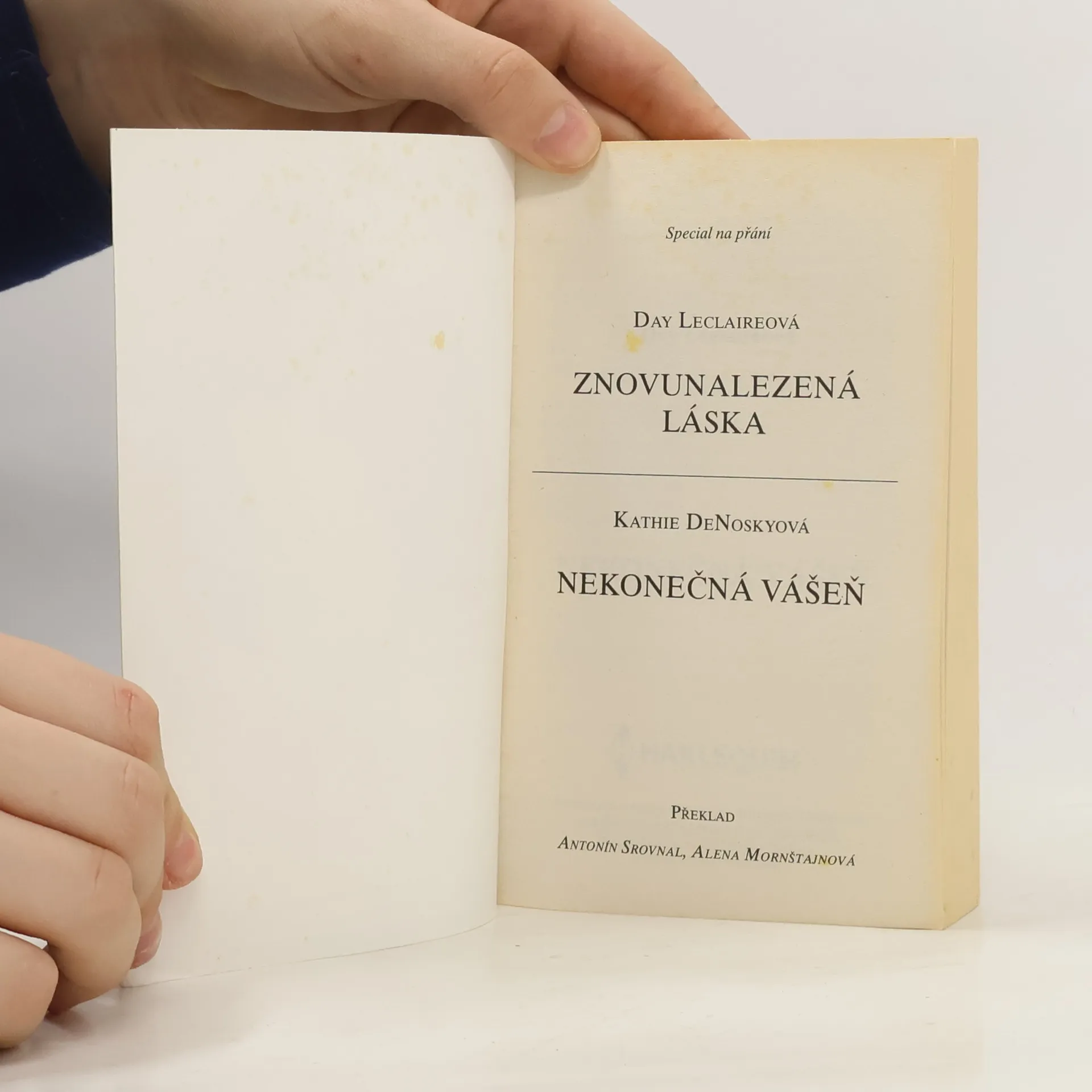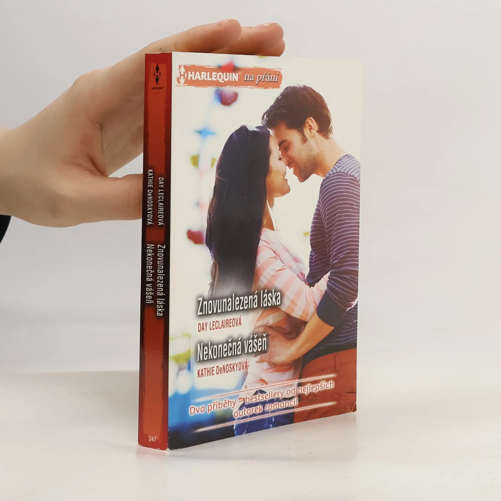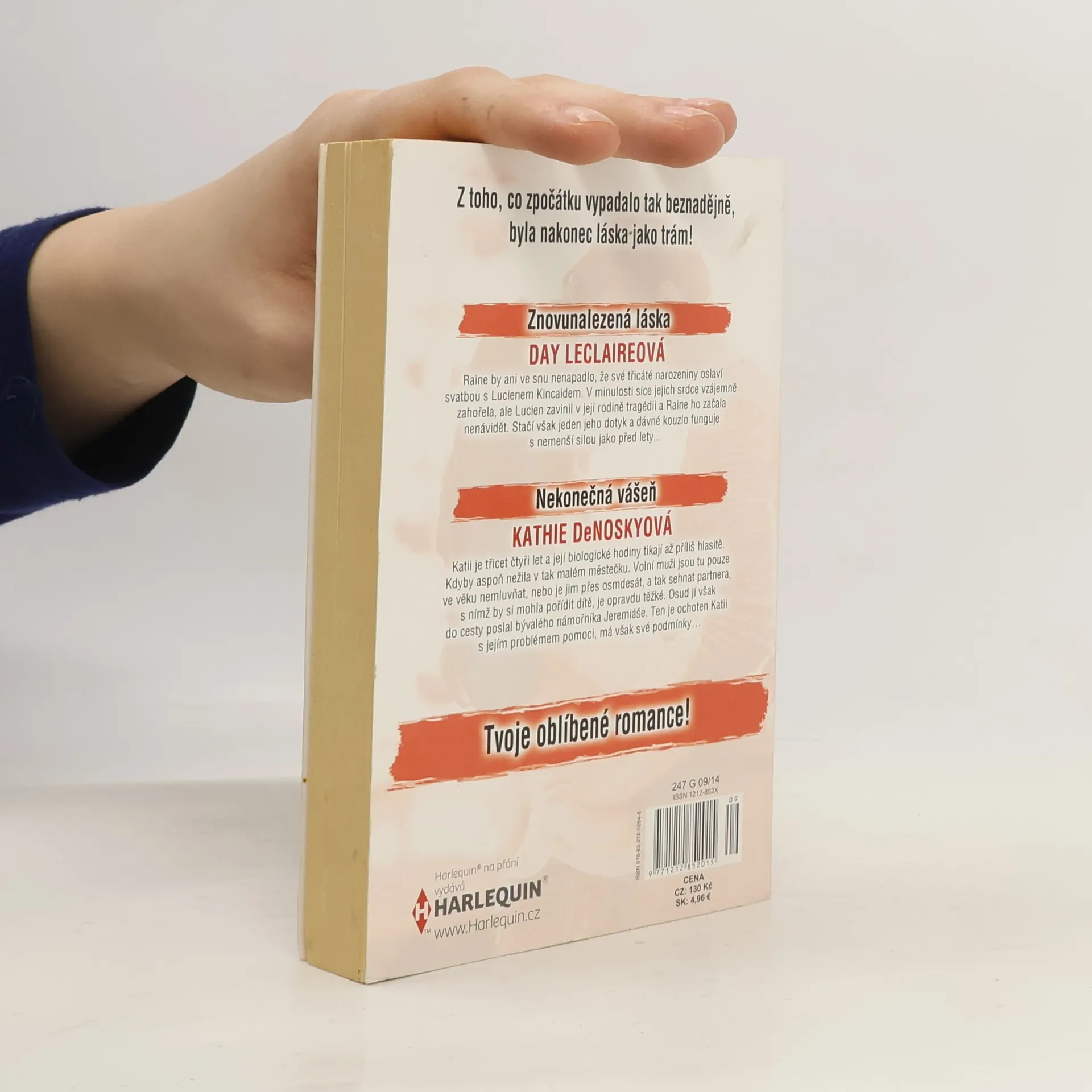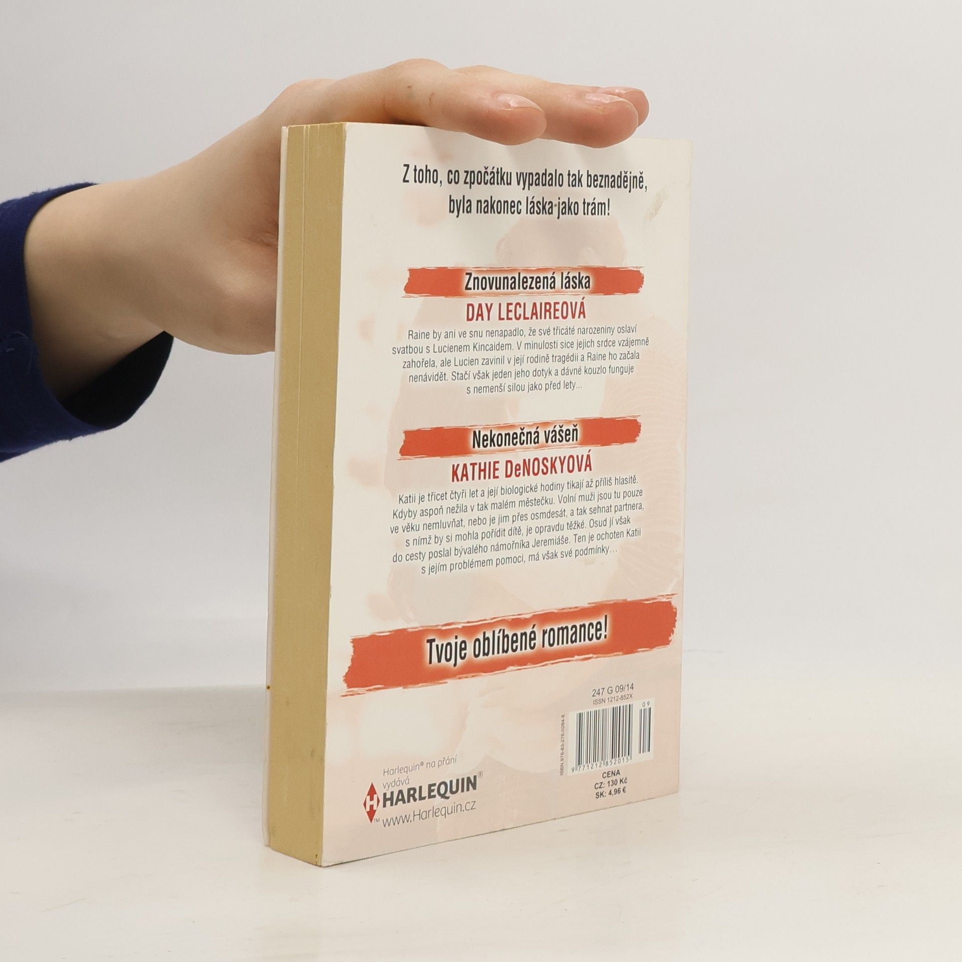Day Leclaire - Znovunalezená láska Raine by ani ve snu nenapadlo, že své třicáté narozeniny oslaví svatbou s Lucienem Kincaidem. V minulosti sice jejich srdce vzájemně zahořela, ale Lucien zavinil v její rodině tragédii a Raine ho začala nenávidět. Stačí však jeden jeho dotyk a dávné kouzlo funguje s nemenší silou jako před lety… Kathie DeNosky - Nekonečná vášeň Katii je třicet čtyři let a její biologické hodiny tikají až příliš hlasitě. Kdyby aspoň nežila v tak malém městečku. Volní muži jsou tu pouze ve věku nemluvňat, nebo je jim přes osmdesát, a tak sehnat partnera, se kterým by si mohla pořídit dítě, je opravdu těžké. Osud jí však do cesty poslal bývalého námořníka Jeremiáše. Ten je ochoten Katii s jejím problémem pomoci, má však své podmínky…