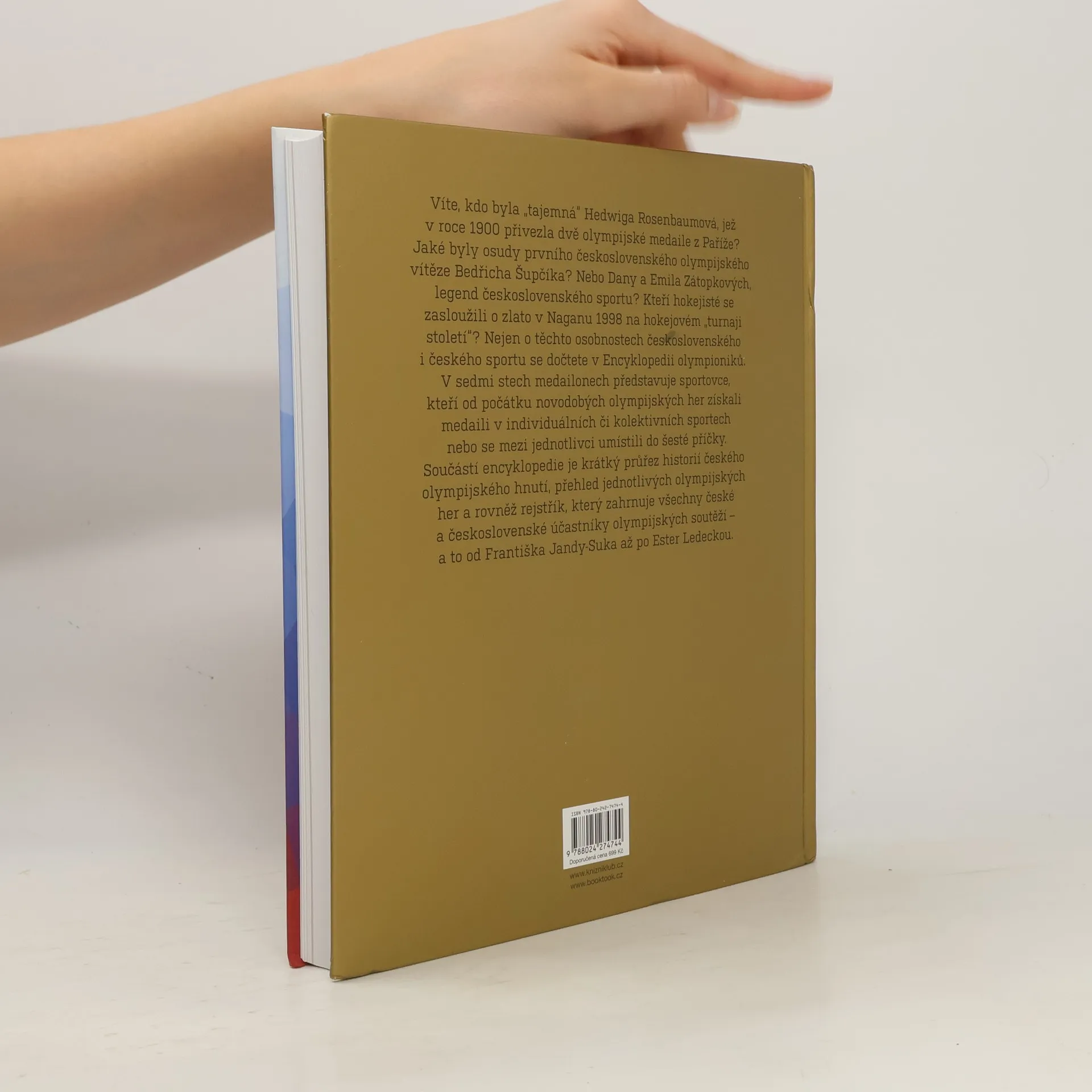 Nejkomplexnější, nejobsáhlejší a nejaktuálnější encyklopedie československého a českého olympijského sportu. Víte, kdo byla „tajemná“ Hedwiga Rosenbaumová, jež v roce 1900 přivezla dvě olympijské medaile z Paříže? Jaké byly osudy prvního československého olympijského vítěze Bedřicha Šupčíka? Nebo Dany a Emila Zátopkových, legend československého sportu? Kteří hokejisté se zasloužili o zlato v Naganu 1998 na hokejovém „turnaji století“? Nejen o těchto osobnostech československého i českého sportu se dočtete v nejkomplexnější, nejobsáhlejší a nejaktuálnější Encyklopedii olympioniků. V sedmi stech medailonech představuje sportovce, kteří od počátku novodobých olympijských her získali medaili v individuálních či kolektivních sportech nebo se mezi jednotlivci umístili do šesté příčky. Součástí encyklopedie je krátký průřez historií českého olympijského hnutí, přehled jednotlivých olympijských her a rovněž rejstřík, který zahrnuje všechny české a československé účastníky olympijských soutěží – a to od Františka Jandy-Suka až po Ester Ledeckou. Encyklopedie v mnoha ohledech aktualizuje nebo zpřesňuje často chybně tradované informace a shrnuje dosavadní znalosti o československém, resp. českém sportu a olympijském hnutí.